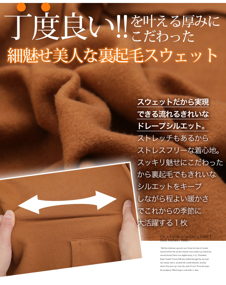 身幅がゆったりととってあるので窮屈感なくリラックスして着用出来ます!程よい厚みでごわごわもせずあったかいのでこれからの時期大活躍してくれそうです!