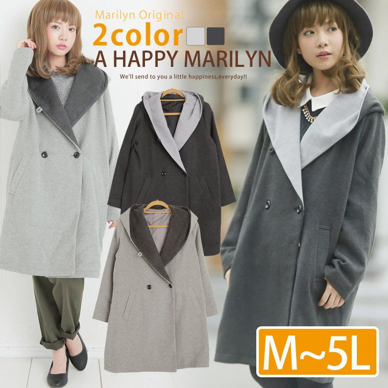 スマートな縦長シルエットで大人っぽく♪バイカラーフードコート
