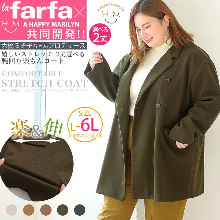 la farfa専属モデル 大橋ミチ子ちゃんプロデュース!ウールライクストレッチダブルジャケット コート