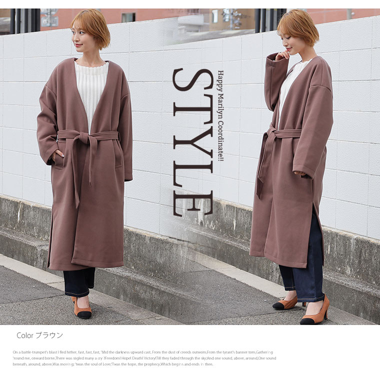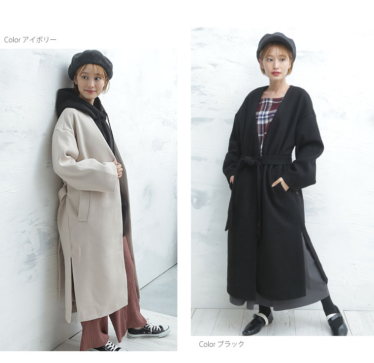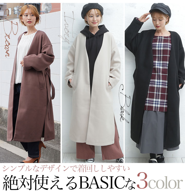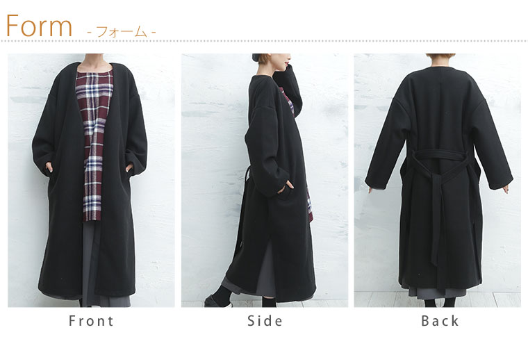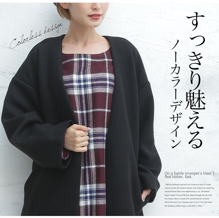 スッキリ美人にコーディネート。ノーカラーデザインコート