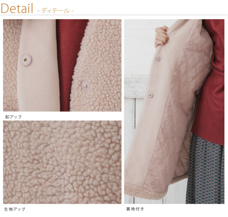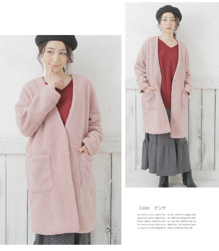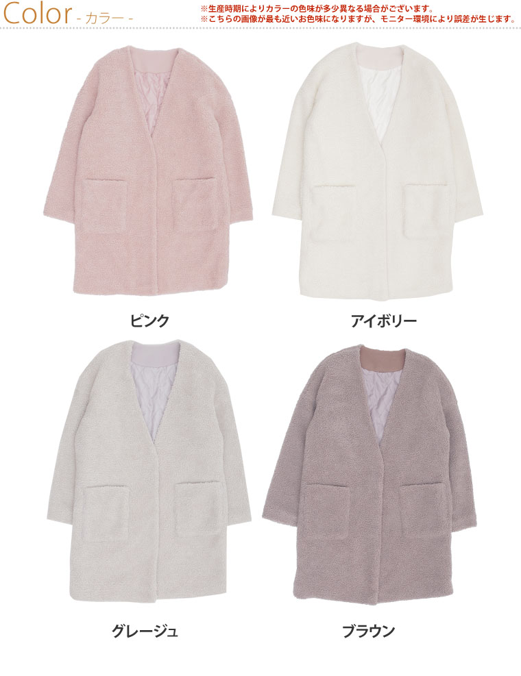 もこもこ生地がカジュアルで可愛い雰囲気に♪ボア素材のカラーコート