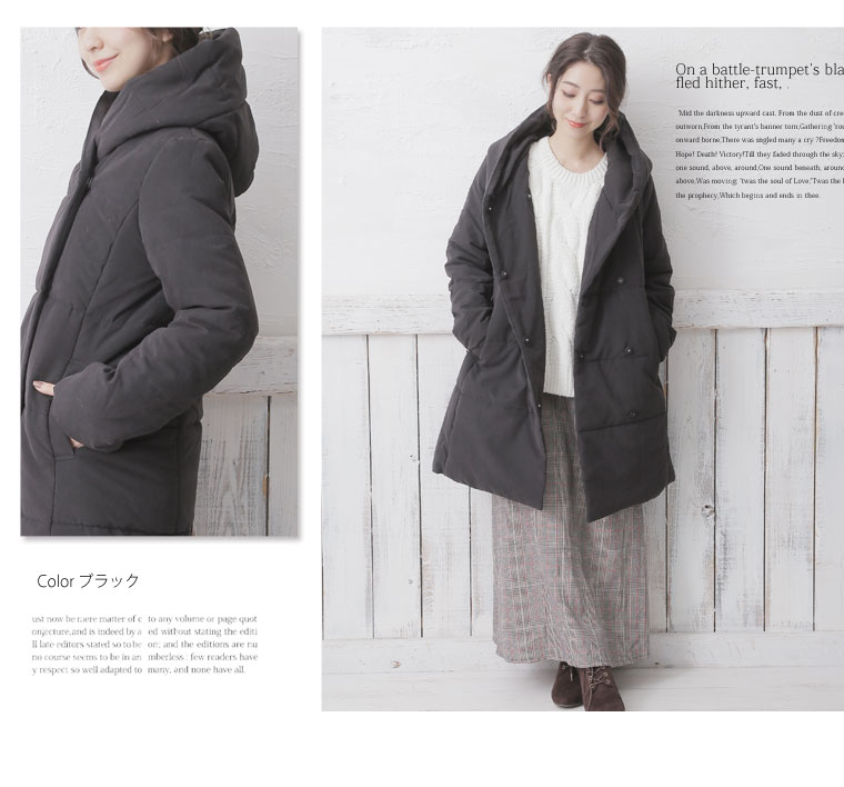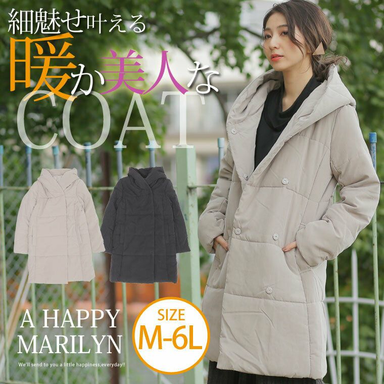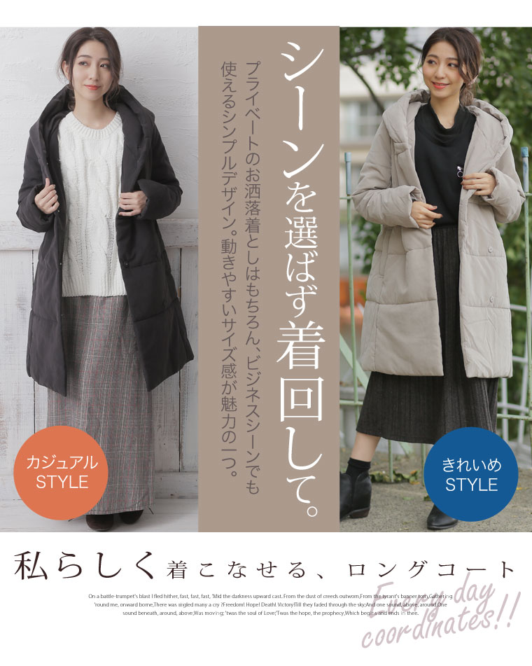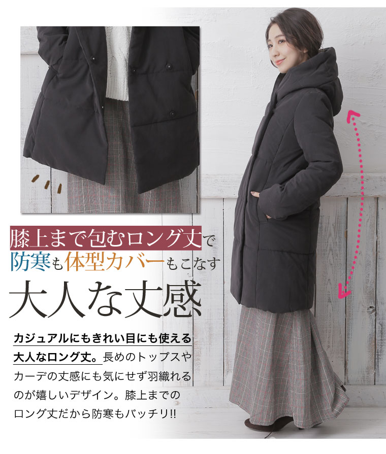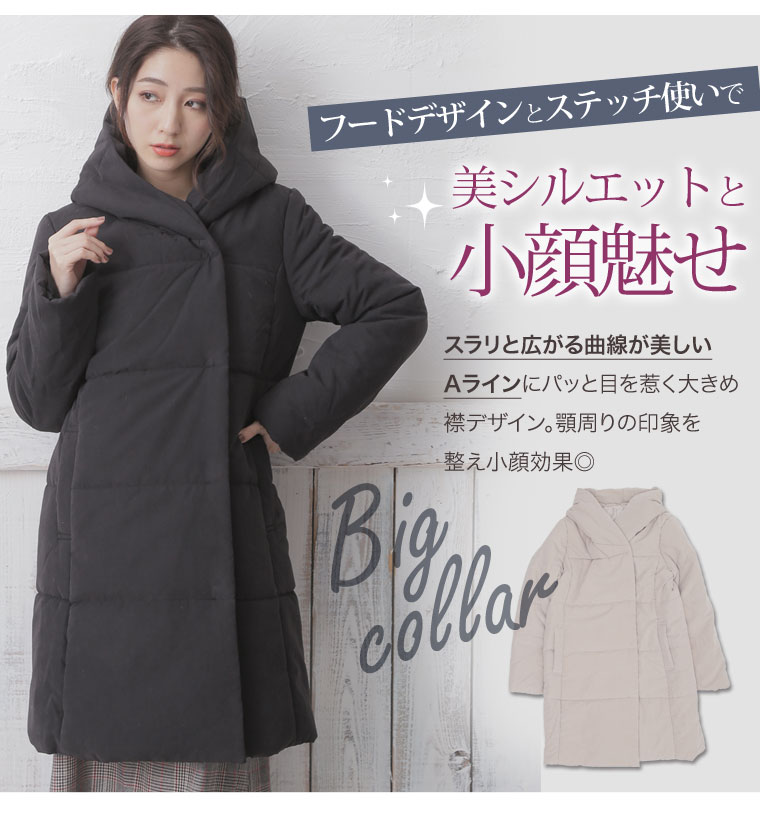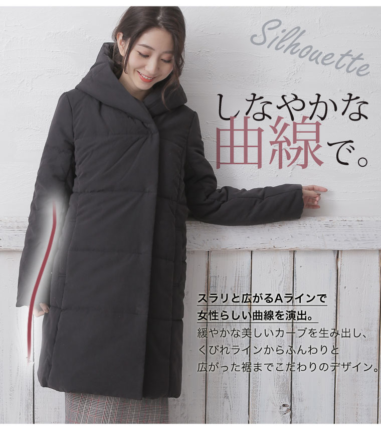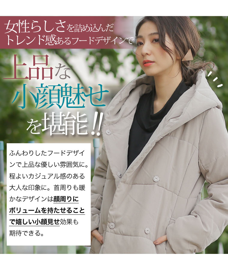 ゆったり着こなすサイズ感♪ふんわり中綿フーデッド美人ロングコート