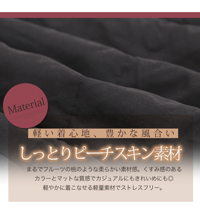 ボリュームのあるネックで小顔効果◎しっとりとしたピーチスキンで大人っぽく着こなして。