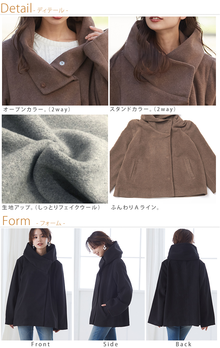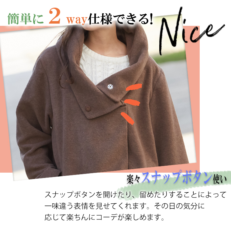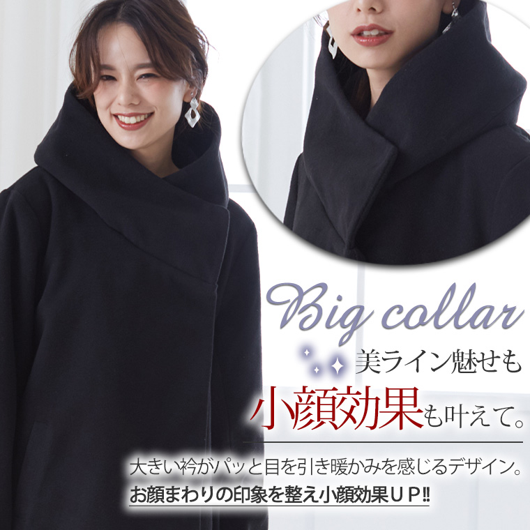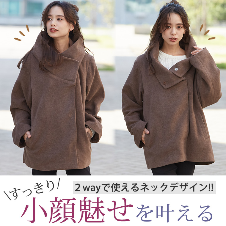 ボリュームのあるスタンドネックで小顔効果◎Aラインで女性らしいさを演出!体型カバーも叶うコートです。