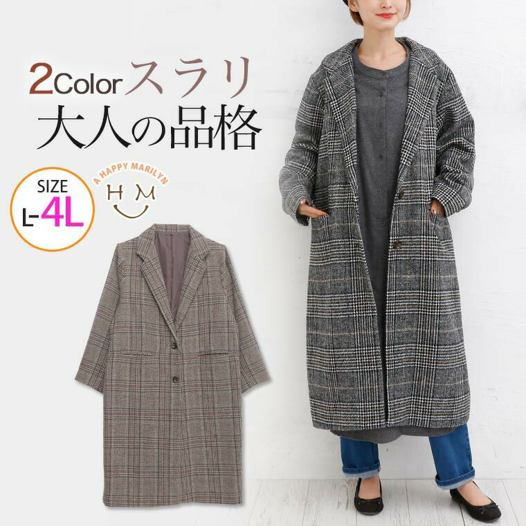 チェック柄でカジュアルから上品スタイルまで完璧なロングコート
