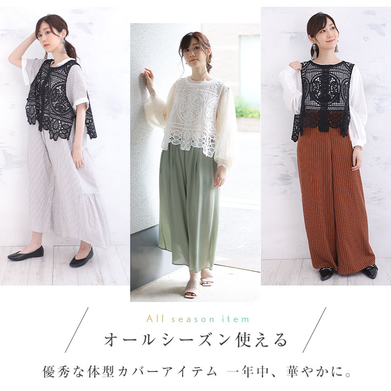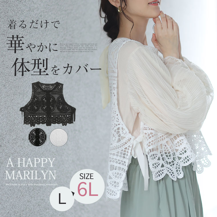 大きいサイズ 着るだけで華やか【美しく体型カバー】レースベスト