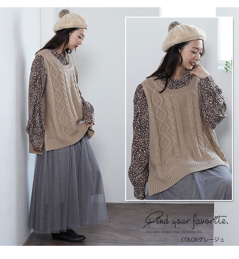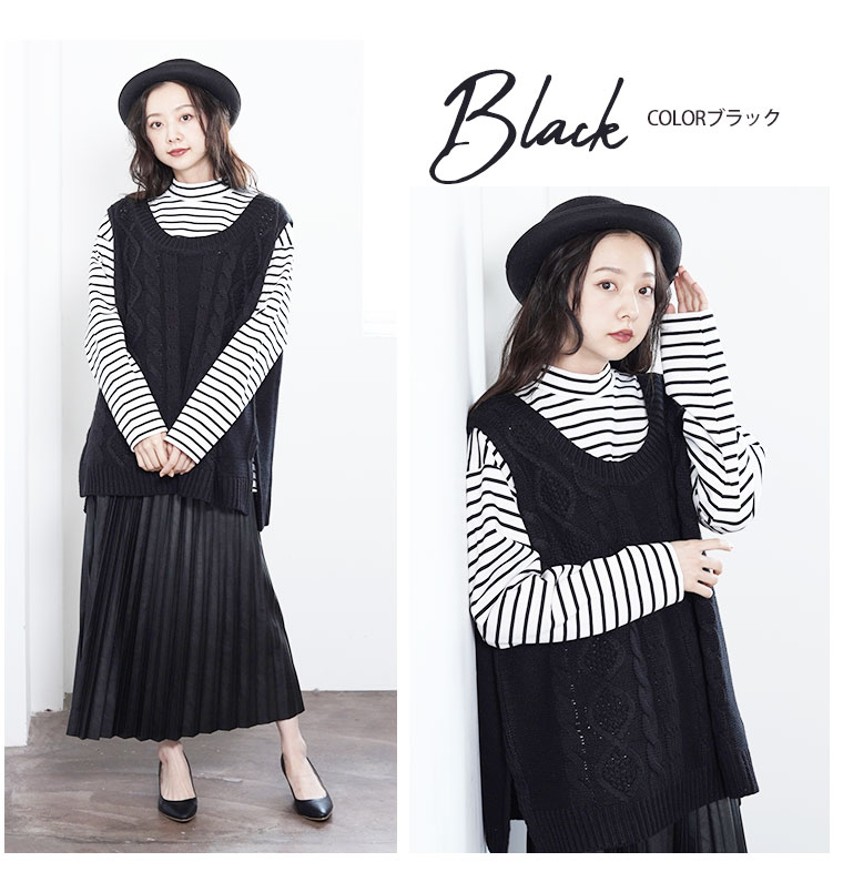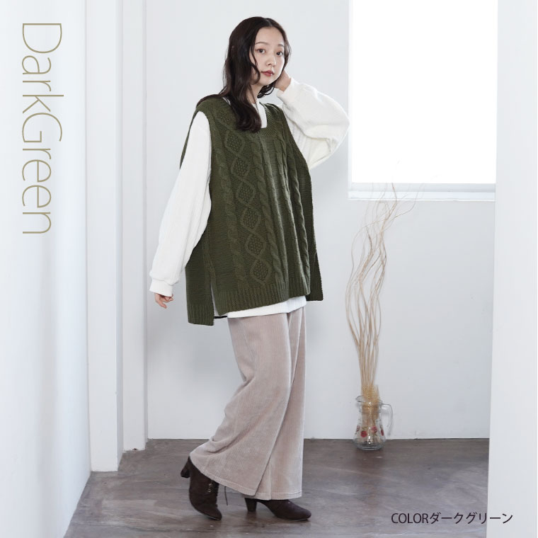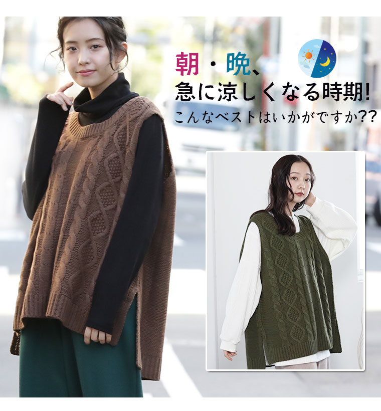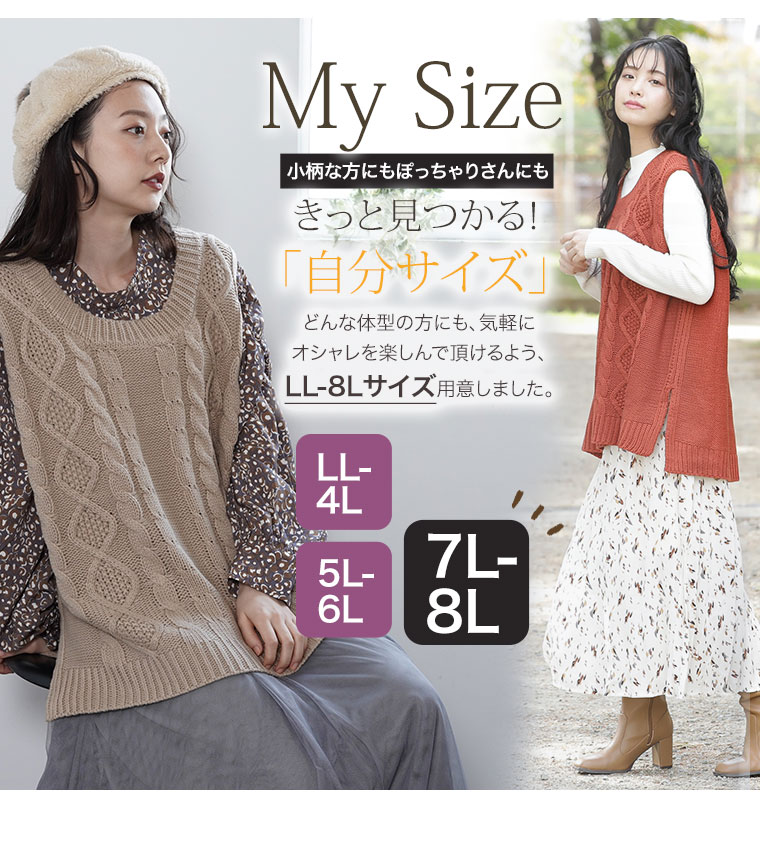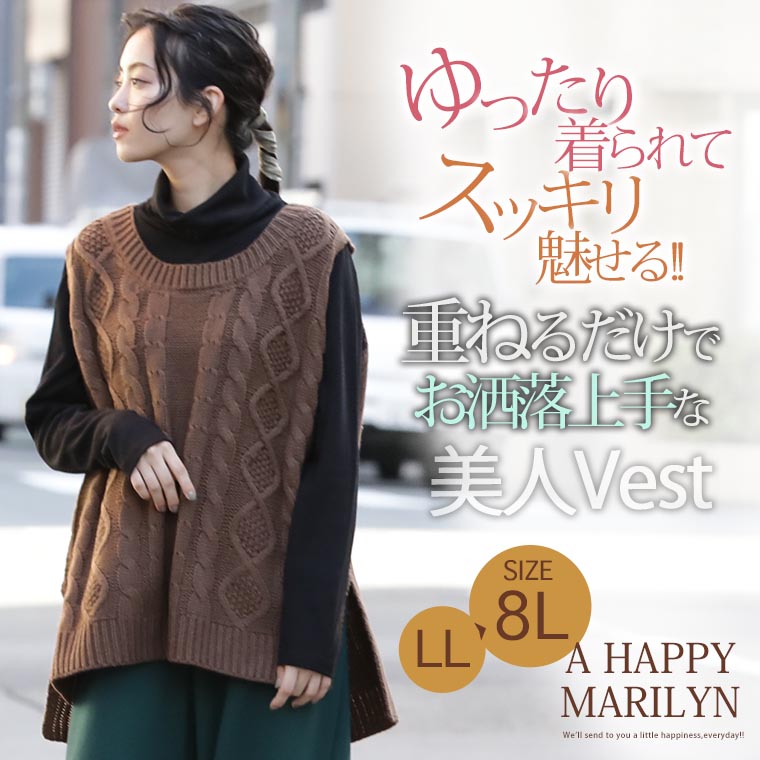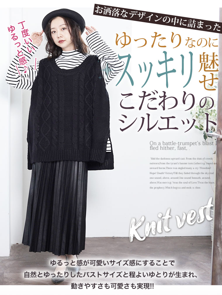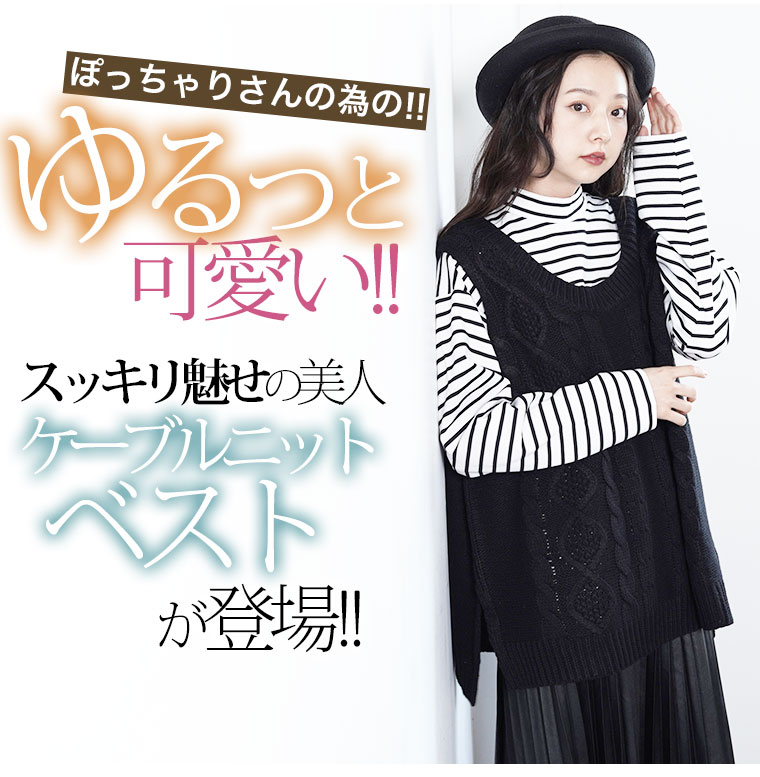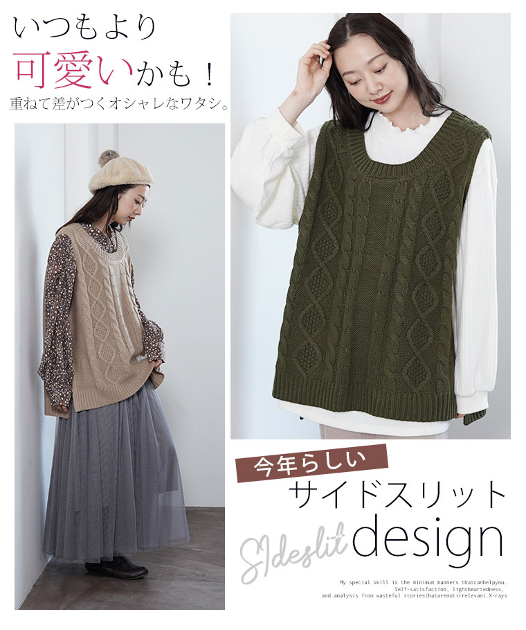 オリジナル ベスト LL 3L 4L 5L 6L 7L 8L 秋 秋物 秋服 冬 冬物 冬服 ぽっちゃり ゆったり かわいい おしゃれ カジュアル ナチュラル サイドスリット ケーブル編 ニットベスト