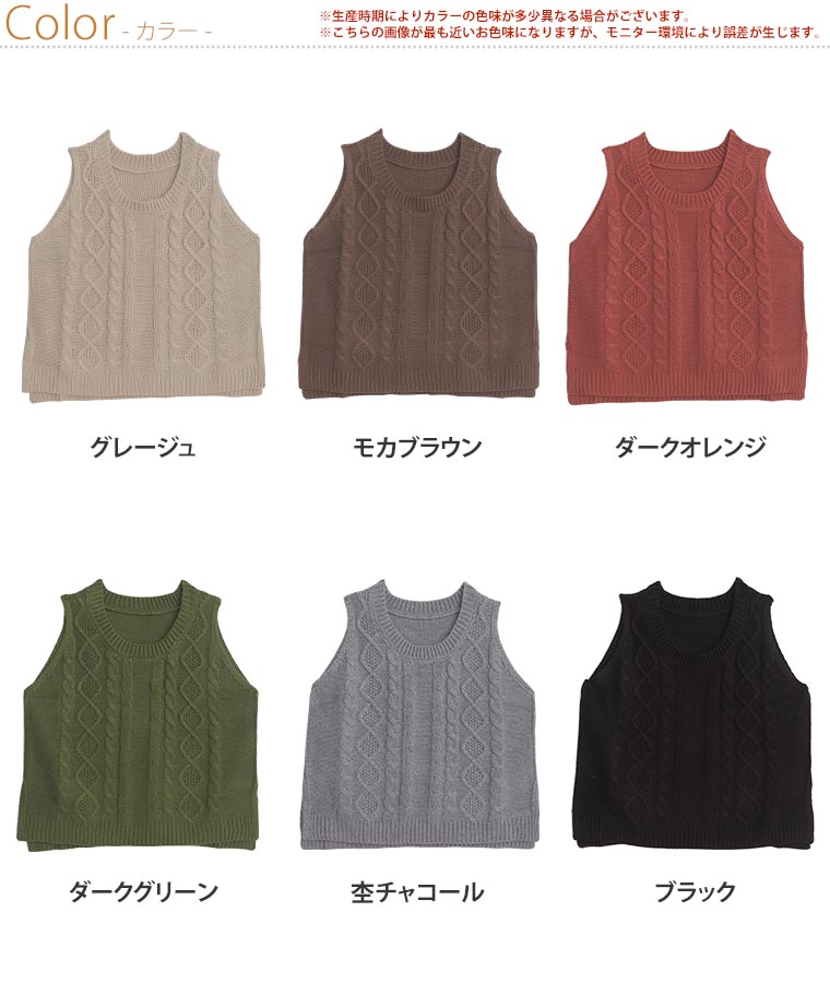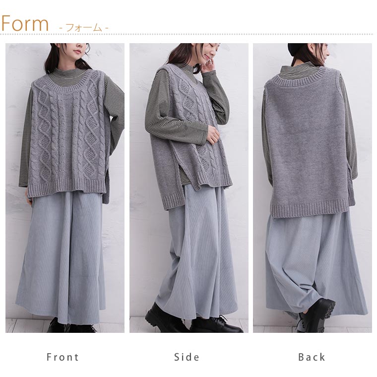 4. 大きいサイズ サイドスリット ケーブル編 ニットベスト