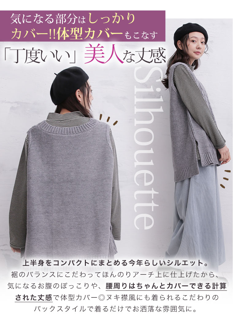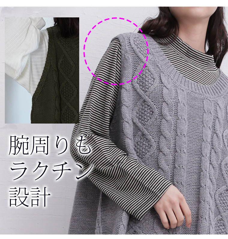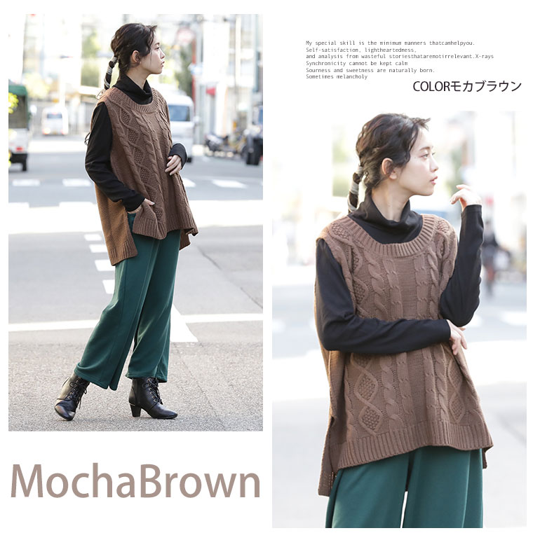 5. 大きいサイズ サイドスリット ケーブル編 ニットベスト