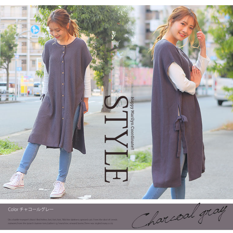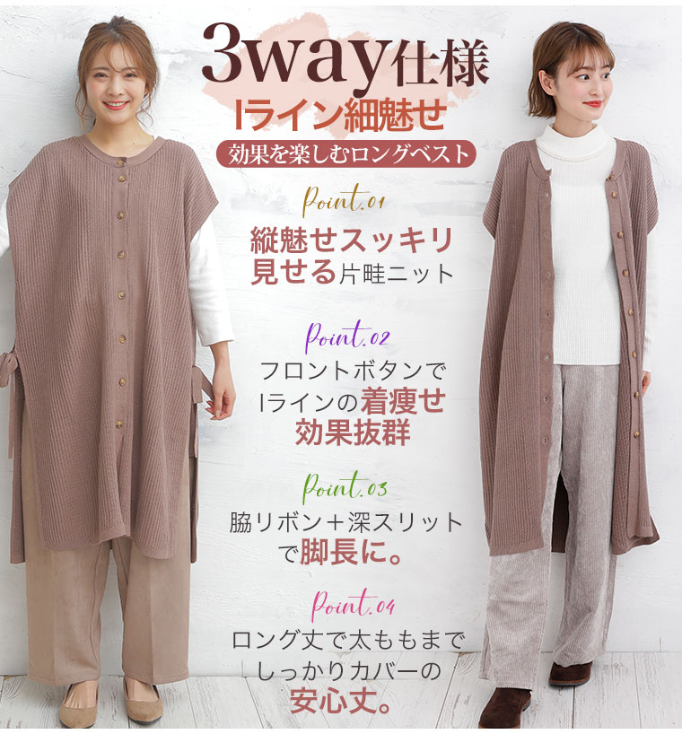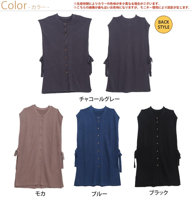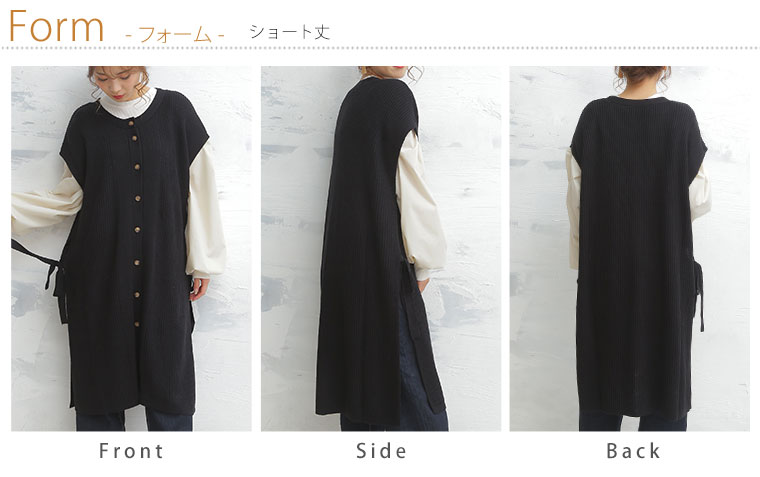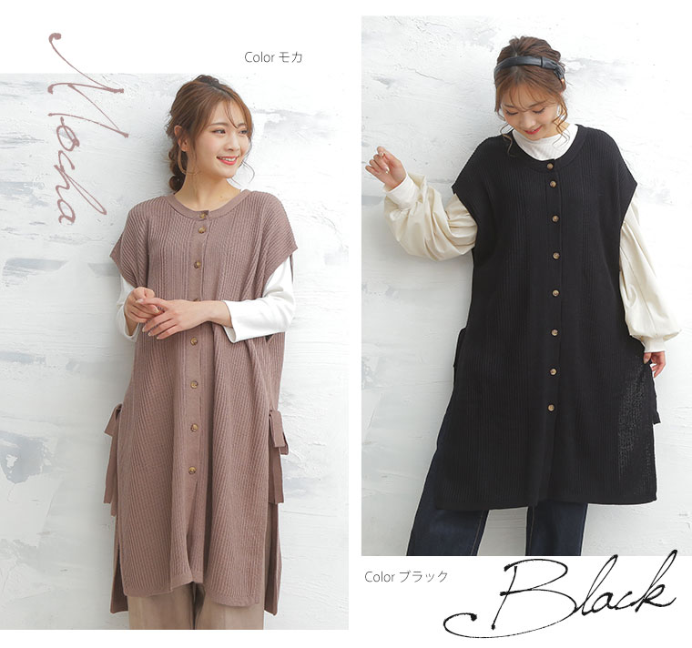 3WAY片ボタンがお洒落なロング脇リボンニットベスト