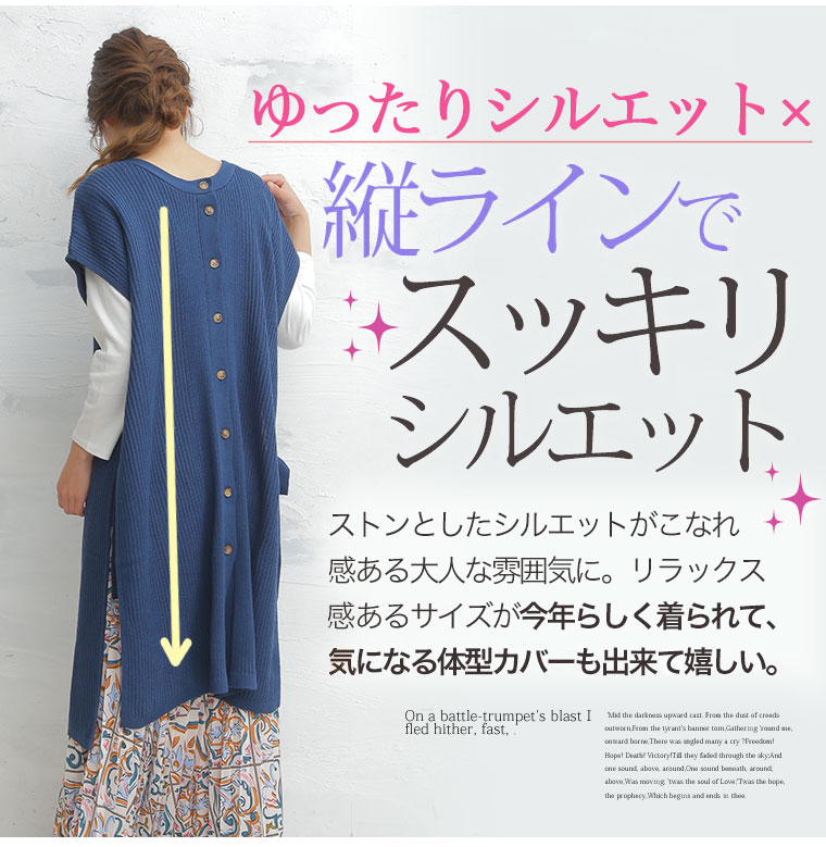 3. 大きいサイズ 洗える2way 片畦 Vネック 脇リボン ウォッシャブル ニット ロング ベスト