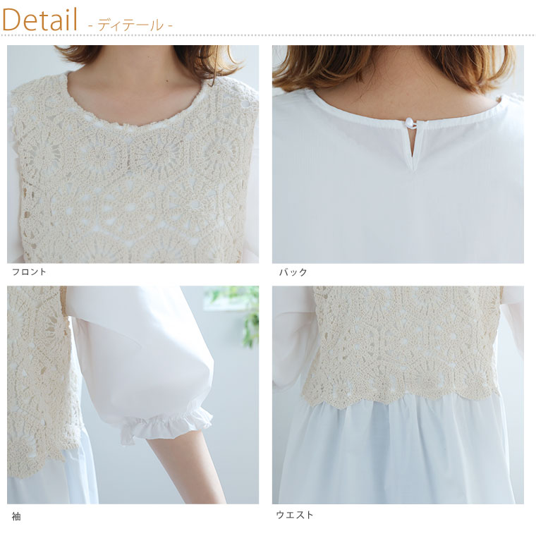 さらりと涼しく着られるシャツ素材と大人かわいいかぎ針編み