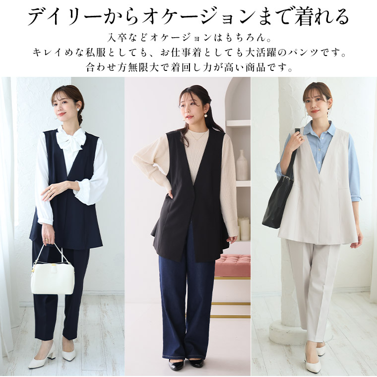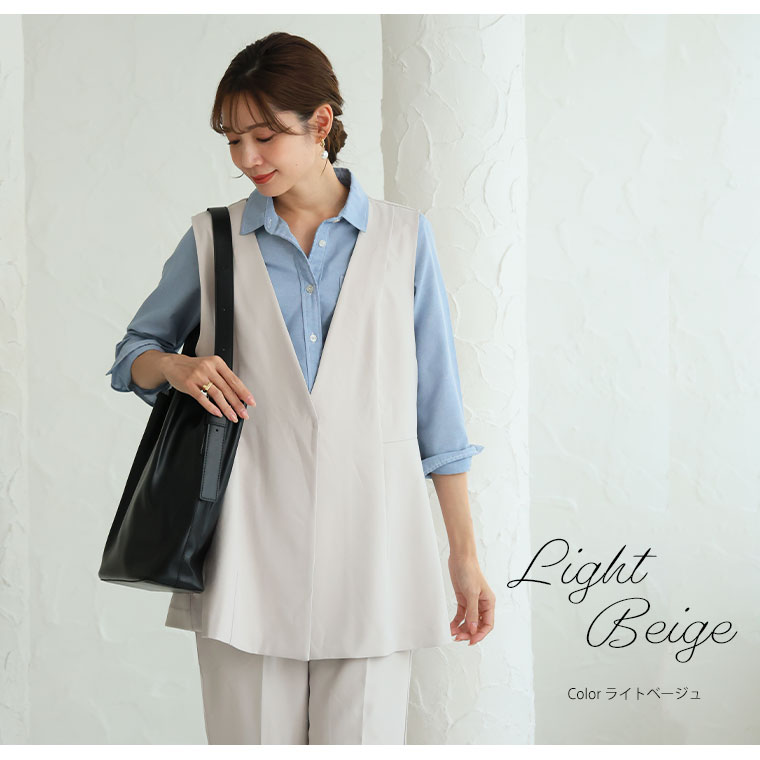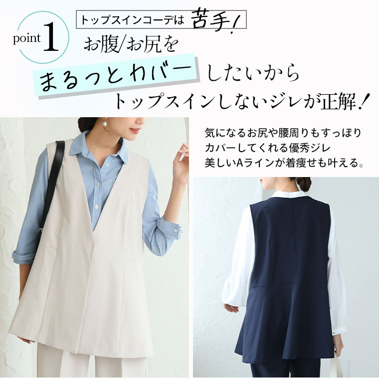 洗えて動ける!「いつでも使えるキチンと服」ストレッチペプラムジレ