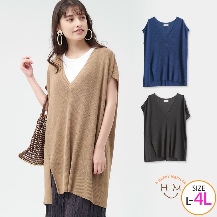 他の画像を見る ニット ベスト LL 3L 4L 夏物 夏服 夏用 ぽっちゃり ゆったり かわいい おしゃれ カジュアル プラスサイズ きれいめ 上品 ガーリー 【LAVEANGE】 深V サイドスリット ニットベスト | 大きいサイズの通販ならハッピーマリリン 価格 ¥ 4,950 税込 在庫切れ お気に入りに登録する