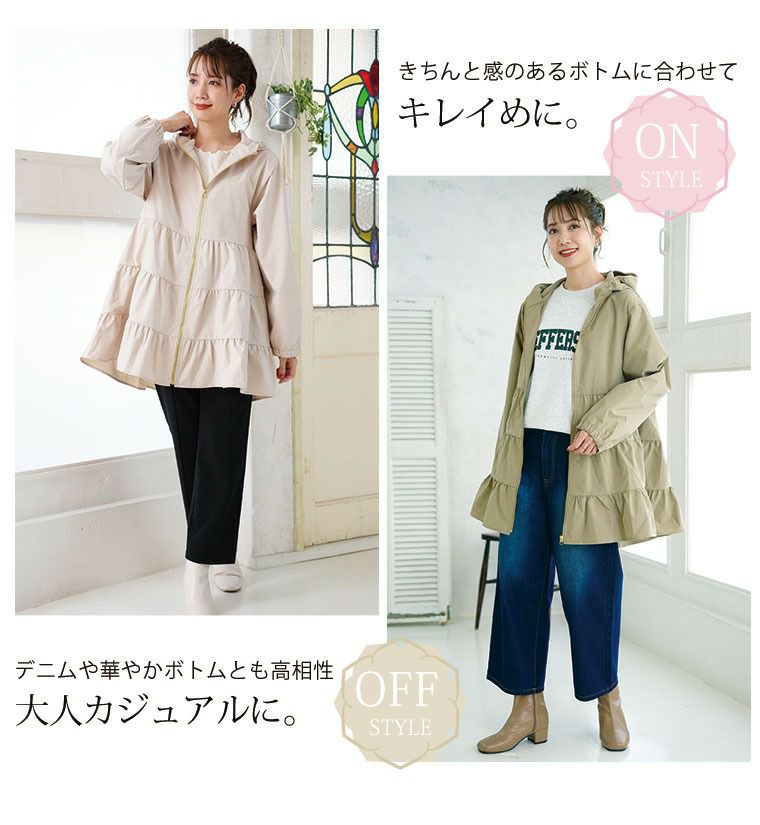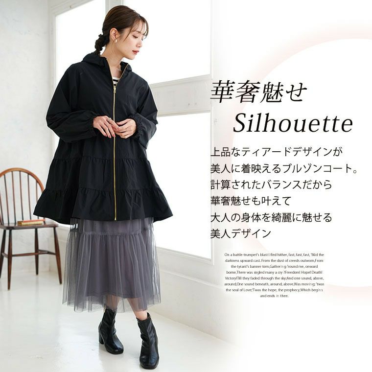 ブルゾンとは、着丈の短いアウターのことで、ジャンパーやジャケットと同様に丈の短いアウター指します。ブルゾンはカジュアルに着こなせて、さらっと羽織れるのが特徴です。どんなアイテムとも合わせやすく、普段使いするのに一番使いやすいのもブルゾンの嬉しいポイントです。ブルゾンの中でも様々な種類があり、マリリンでもたくさんご用意しております。ボアブルゾンや中綿ブルゾンは肌寒くなってくる季節から着られて、トレンドアイテムでもあります。インナーにはロンTやスウェットやパーカー、ワンピースなどどんなアイテムとも相性がよくタイトに着るより、オーバーサイズに着るのが今っぽく人気です。フード付きのブルゾンだとよりカジュアルに着られて、キレイめアイテムと合わせるとシンプルな大人のカジュアルが楽しめますよ。少しヒールのあるシューズやブーツと合わせるとカジュアルになりすぎないのでおすすめです。