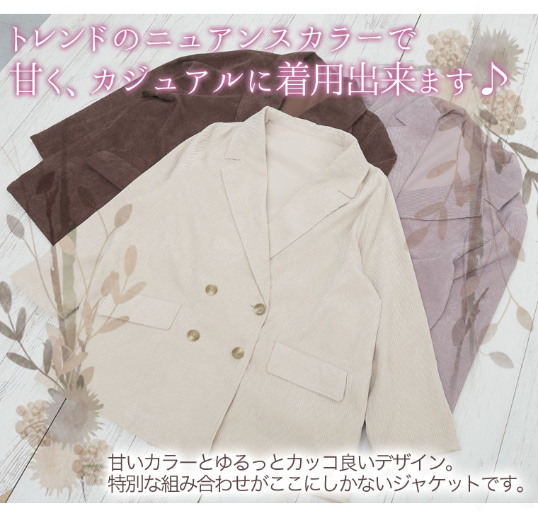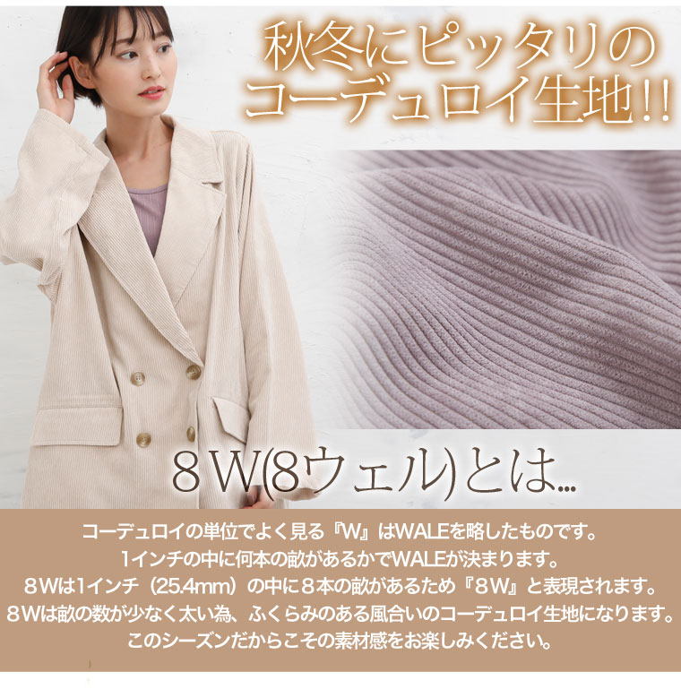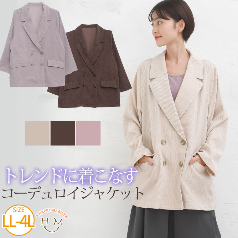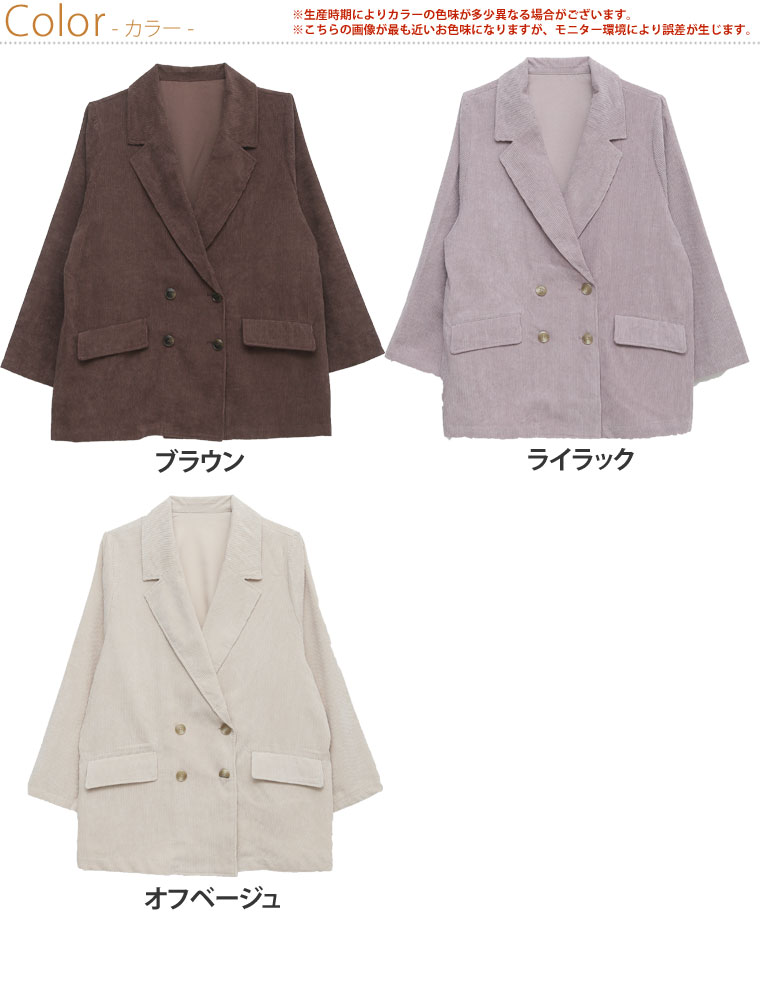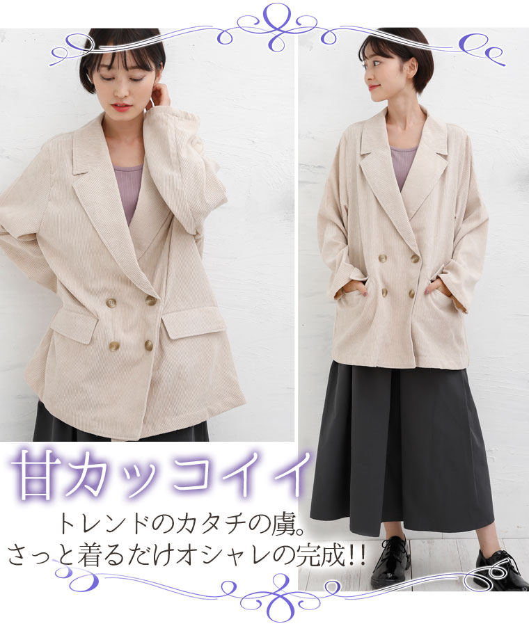 ビックシルエットでゆったり♪8Wコーデュロイ ダブルボタンジャケット