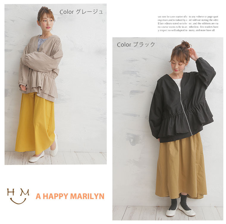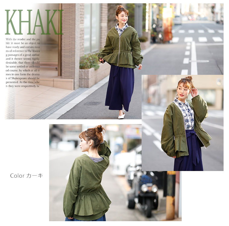 4. 大きいサイズ ボリュームスリーブ 裾フリル 長袖 ノーカラー ブルゾン