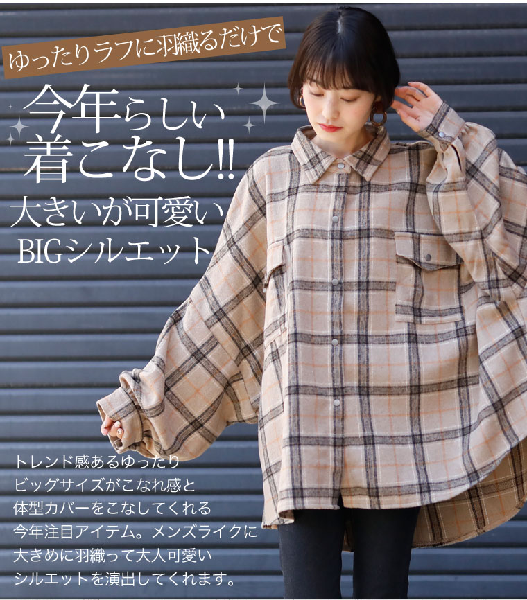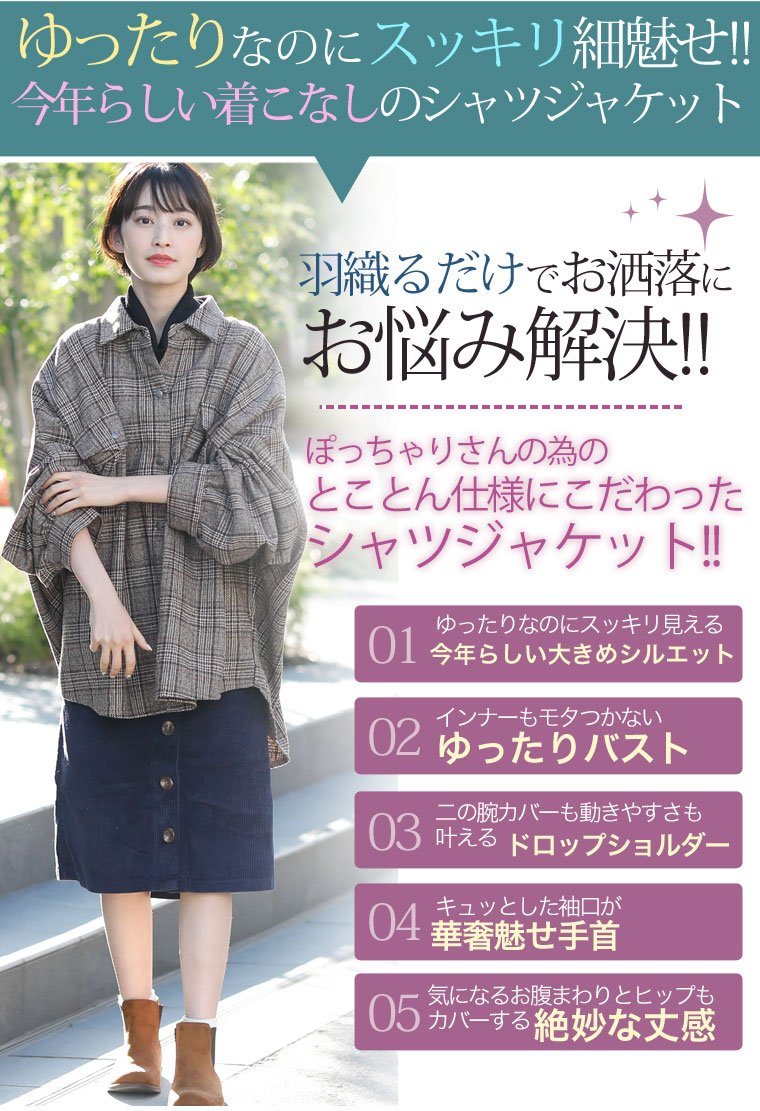 ほっこりチェックで季節感たっぷりに。ゆったり着こなすシャツジャケット