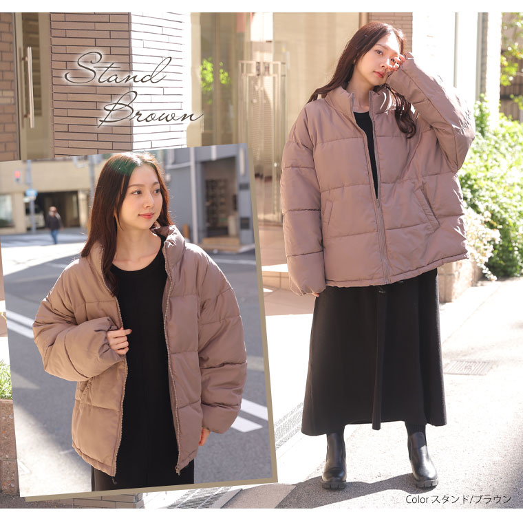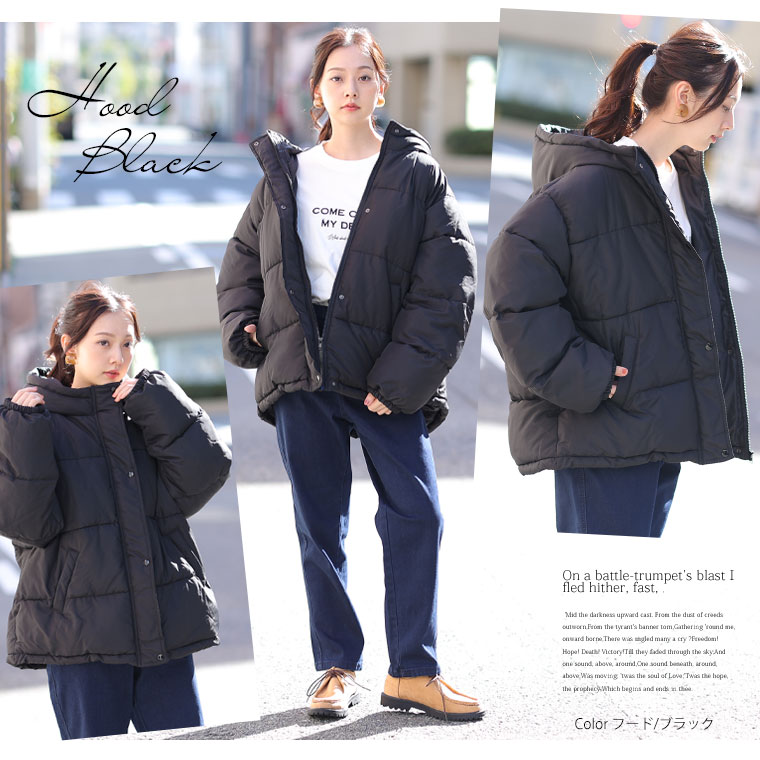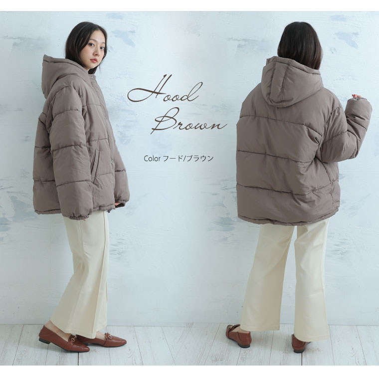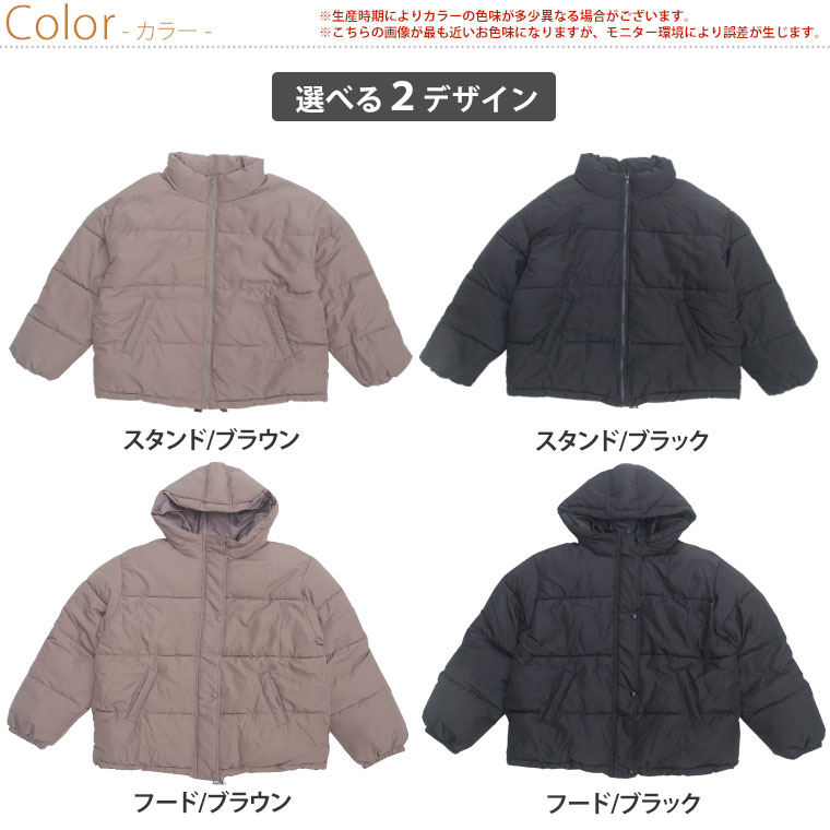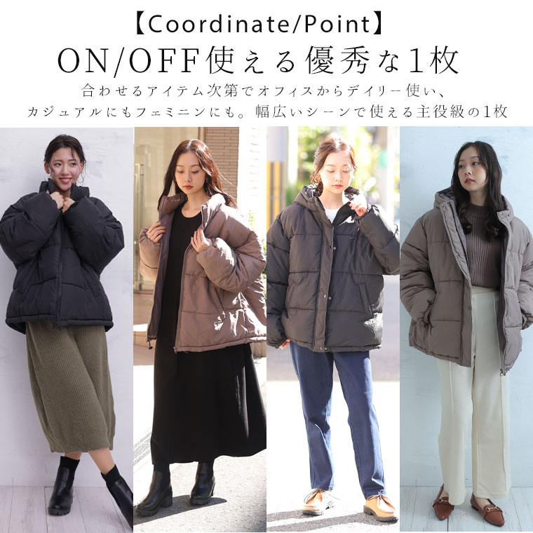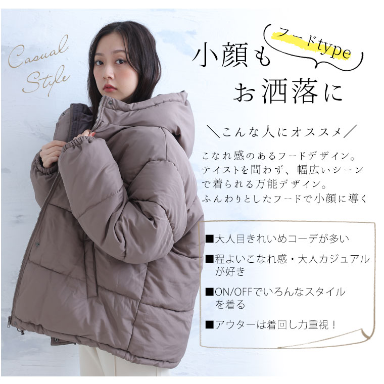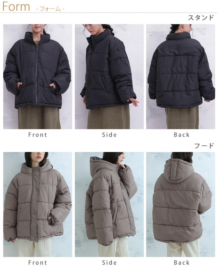 フードtypeとスタンドカラーtype 2デザインから選べるボリューム フェイクダウン