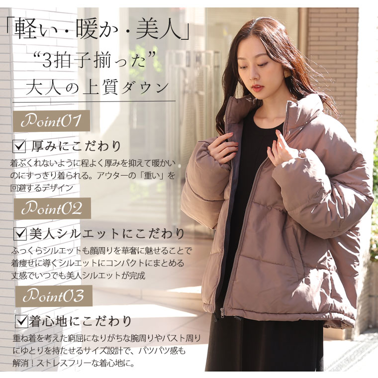 軽くて暖かい、動きやすさも着心地も追及したどんなコーデにも合わせやすいダウンコート