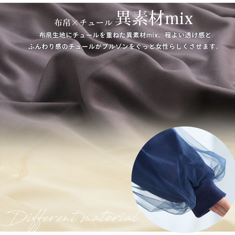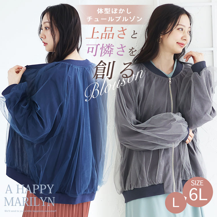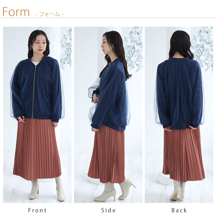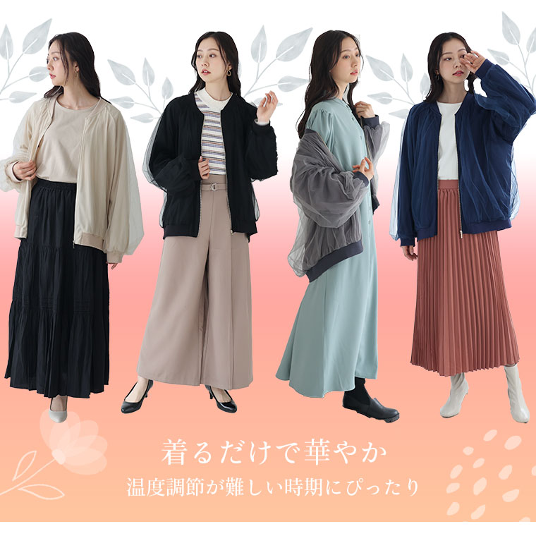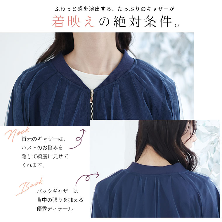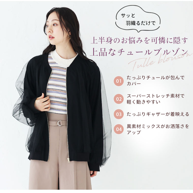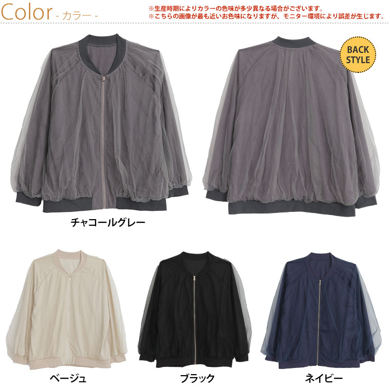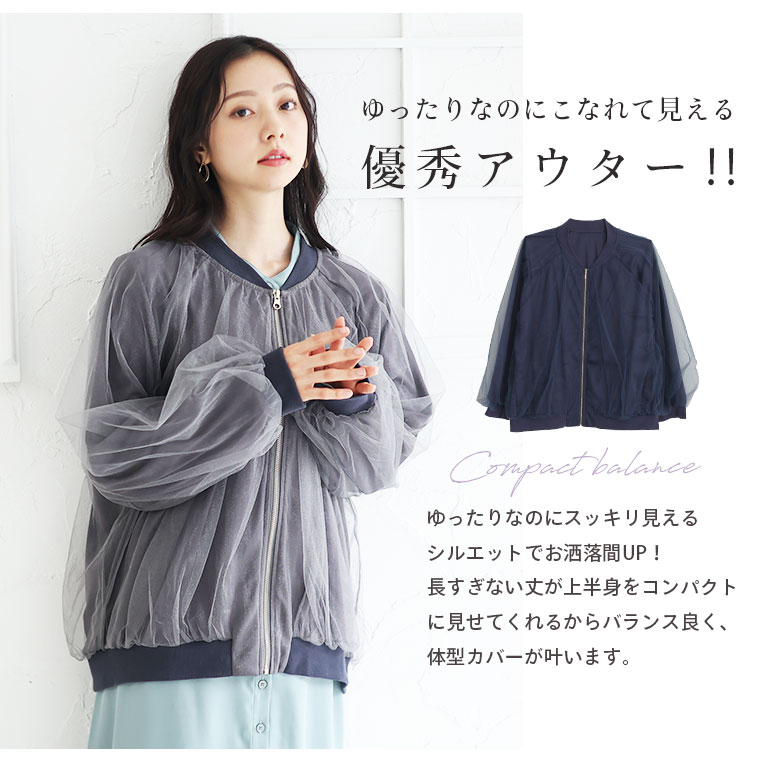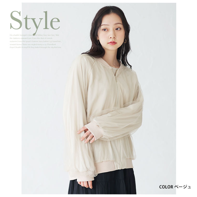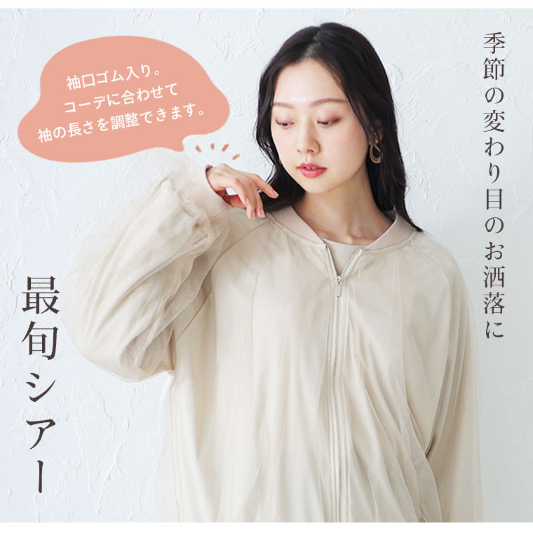 異素材がかわいいチュールがふわりと透けるブルゾン
