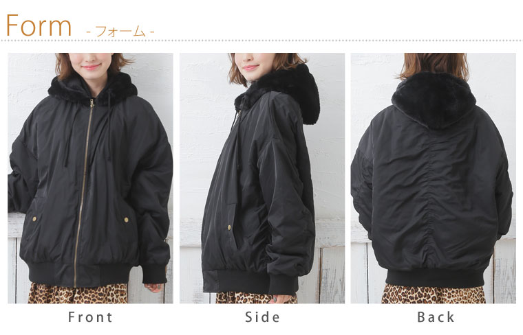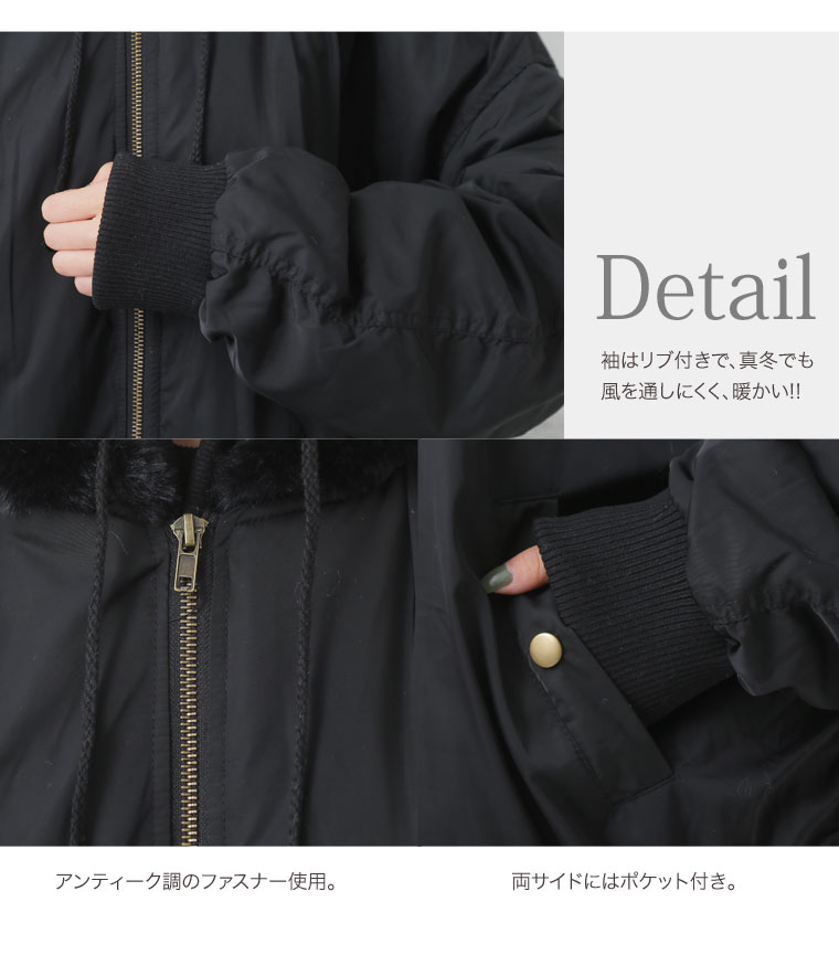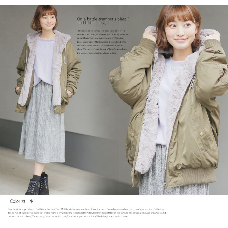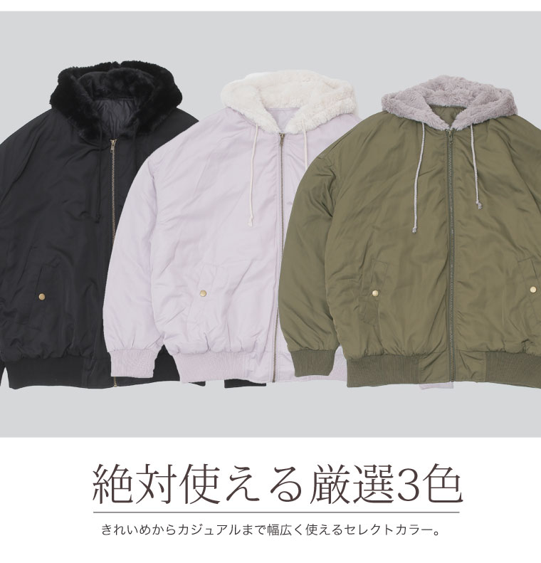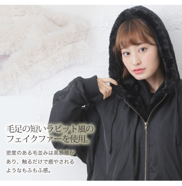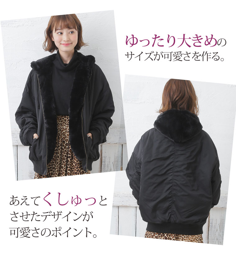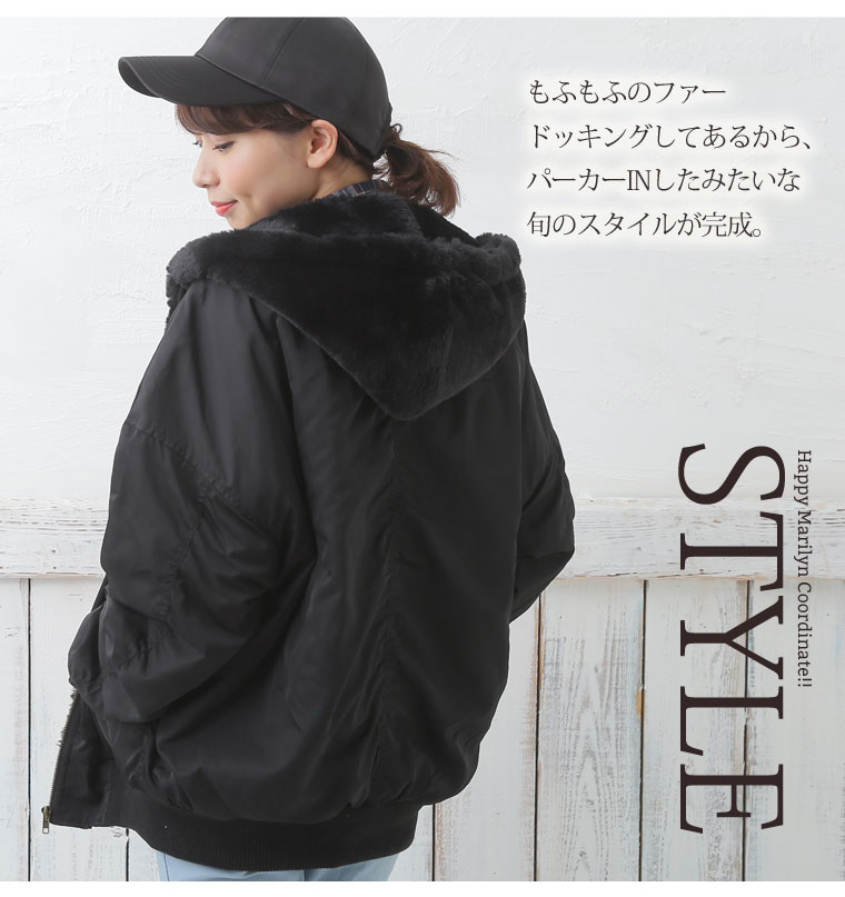 もこもこファーが季節感たっぷりのアクセント。フード付きビッグMA-1