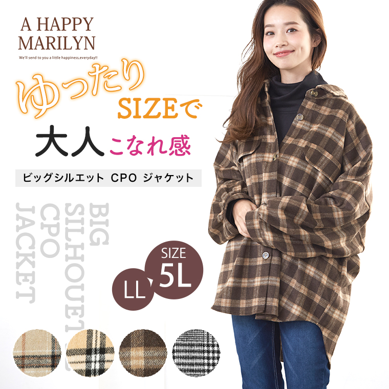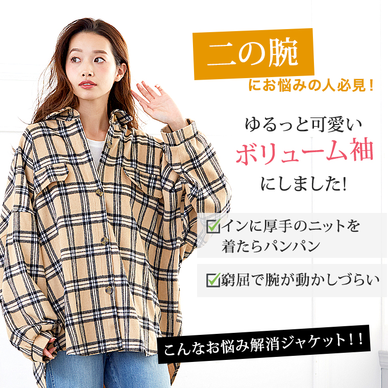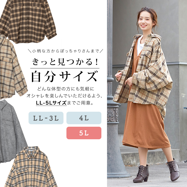 アウター ブルゾン LL 3L 4L 5L 秋 秋物 秋服 冬 冬物 冬服 ぽっちゃり ゆったり かわいい おしゃれ カジュアル ナチュラル 胸周り 二の腕カバー お尻 チェック柄 ゆる シャツ 長袖 ジャケット