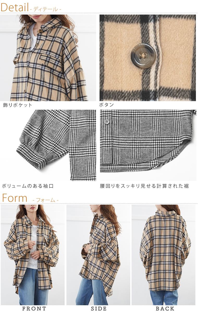 3. 大きいサイズ チェック柄 ゆる シャツ 長袖 ジャケット
