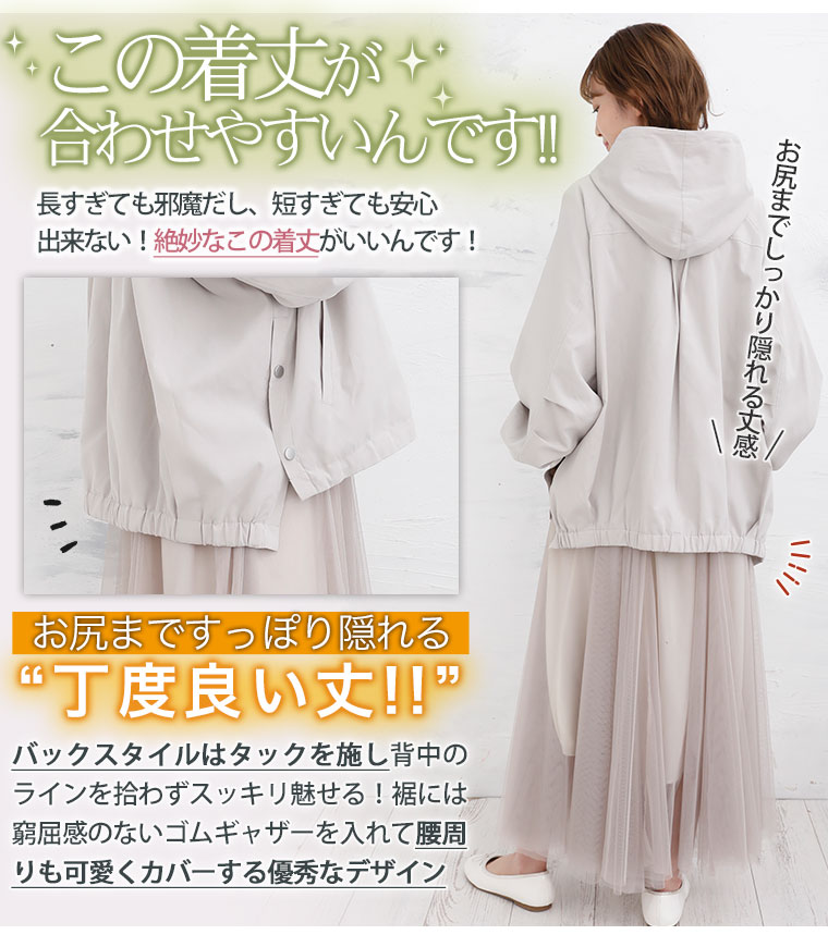 ギャザーたっぷりの袖とお尻まですっぽり隠れる丈感で体型カバー