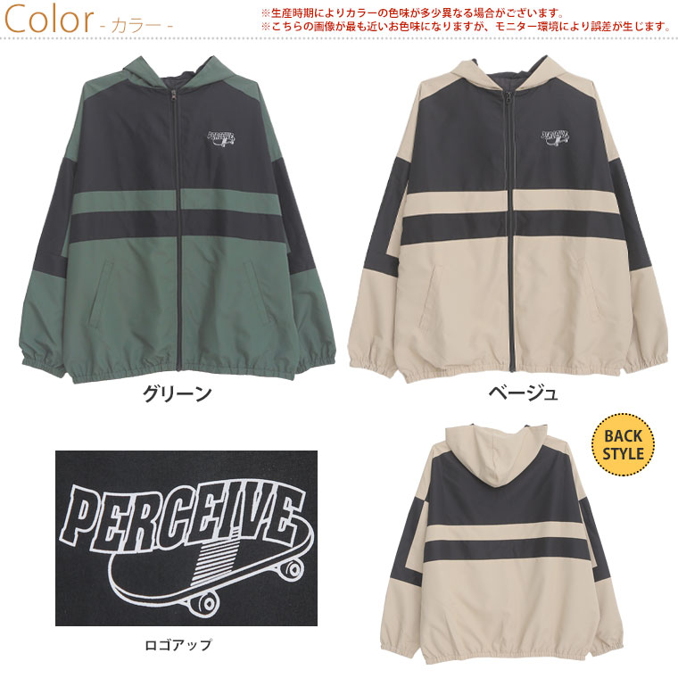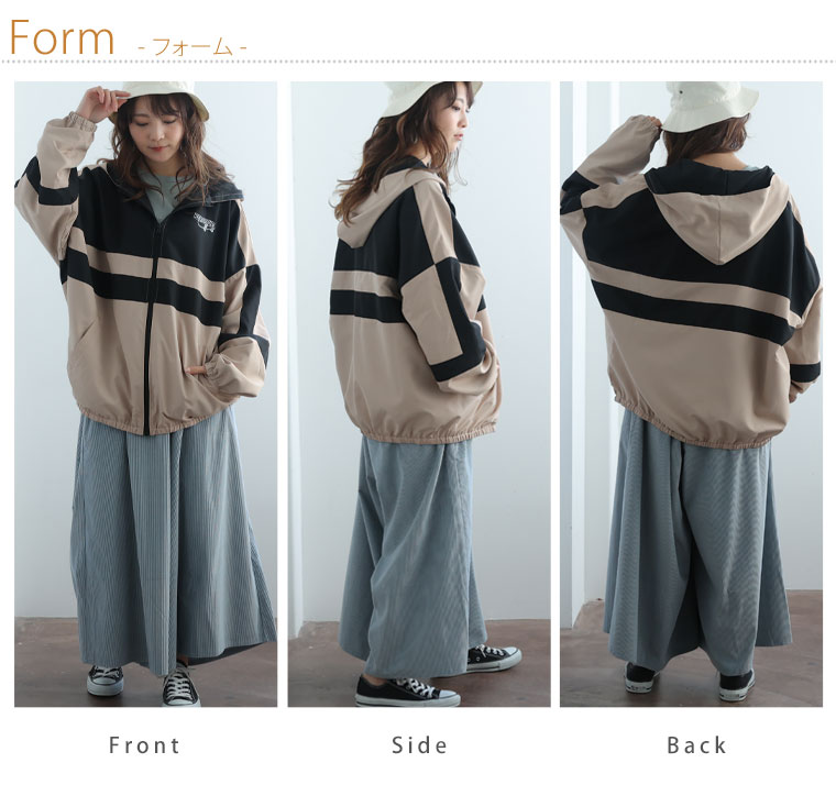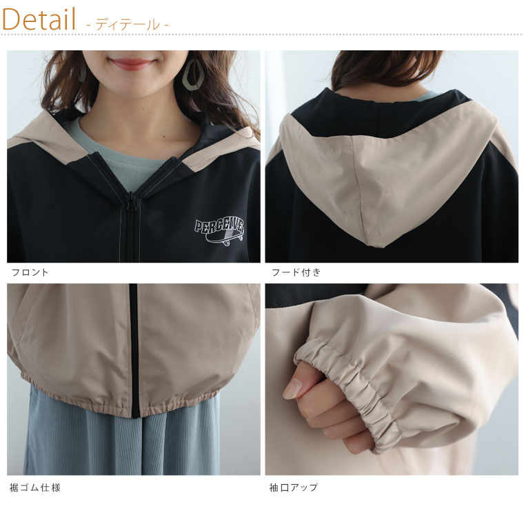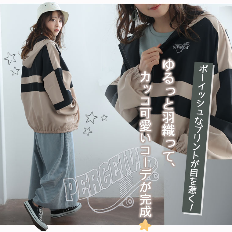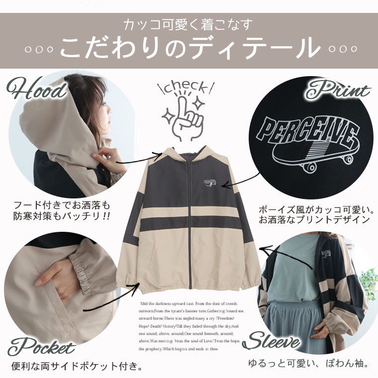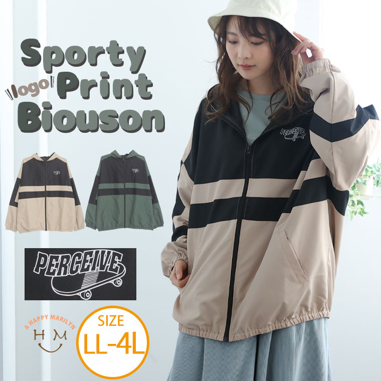 アウター ブルゾン ジャケット ライトアウター LL 3L 4L 春 春物 春服 ぽっちゃり ゆったり かわいい おしゃれ カジュアル ナチュラル プラスサイズ フード フーディ パーカー 配色 プリント スポーティブルゾン