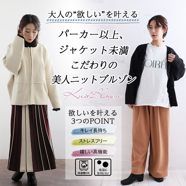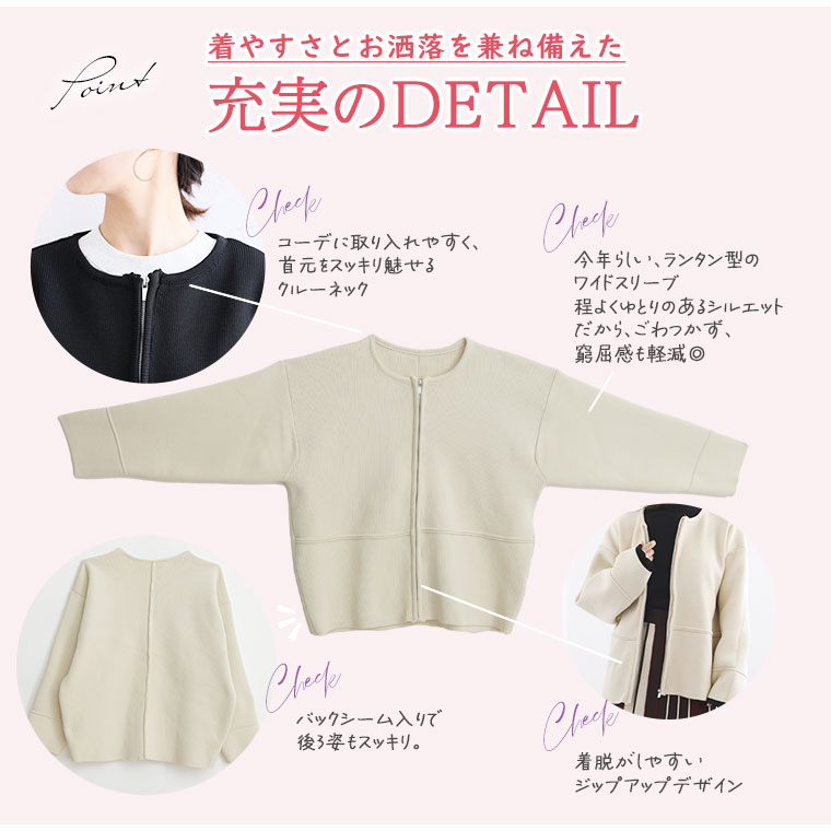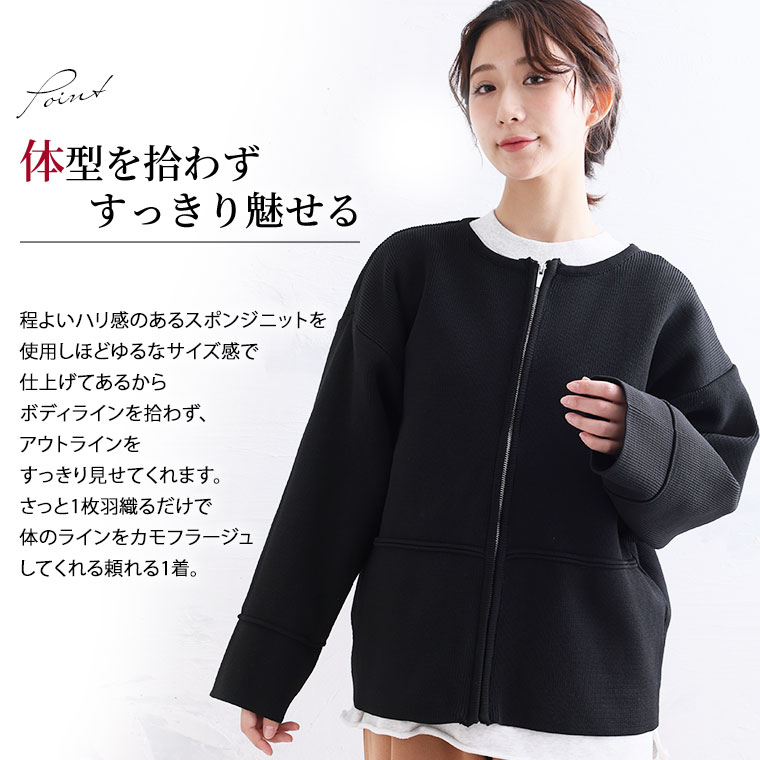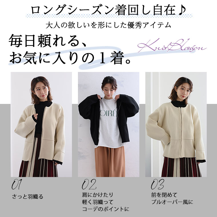 着回し自在な美人アイテム、スポンジニットジップブルゾン。