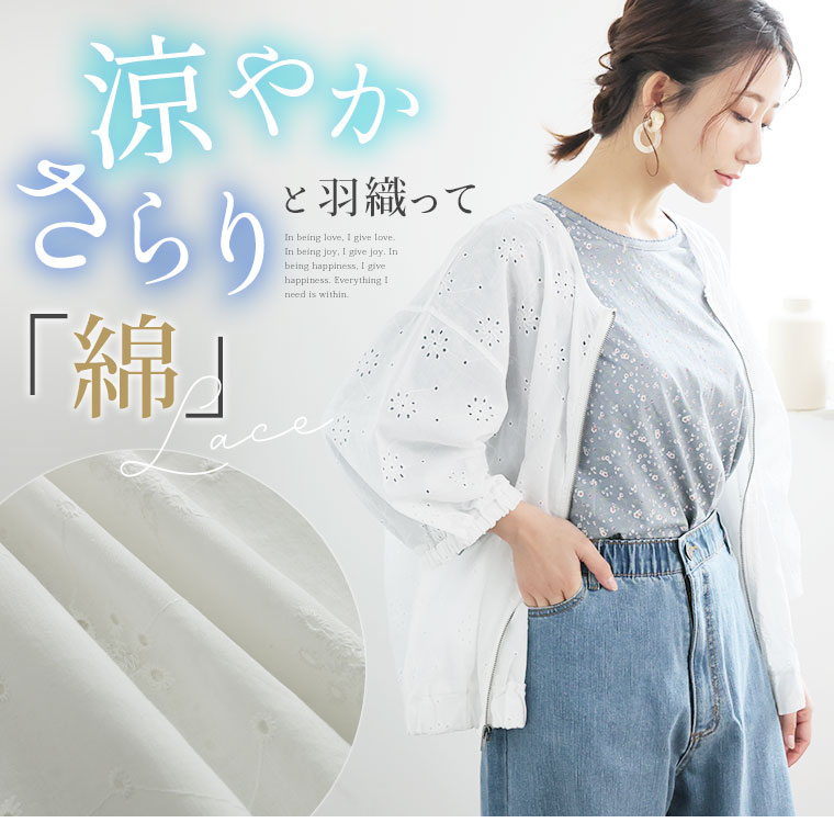 さらりと羽織れる 綿レースブルゾン