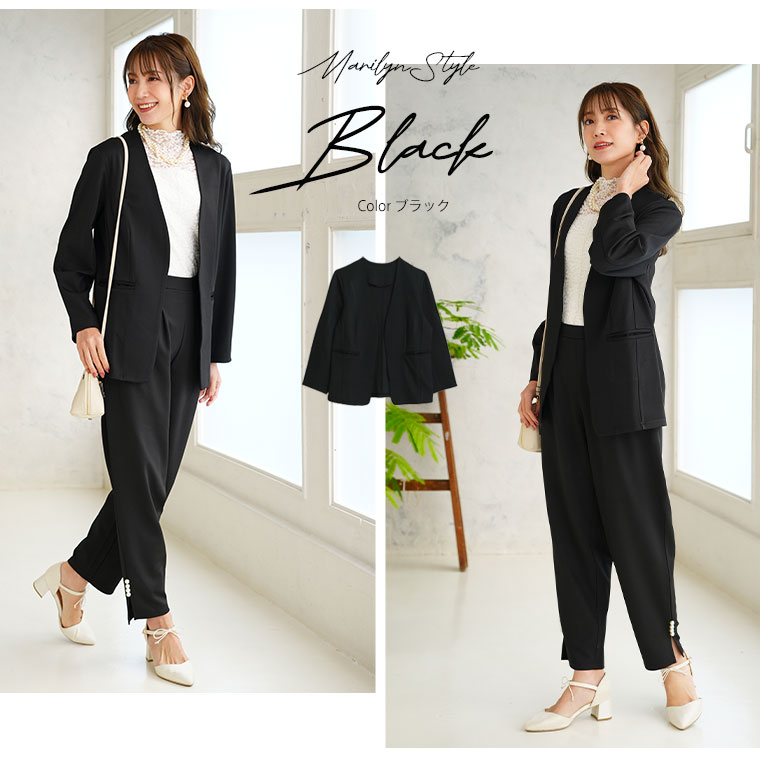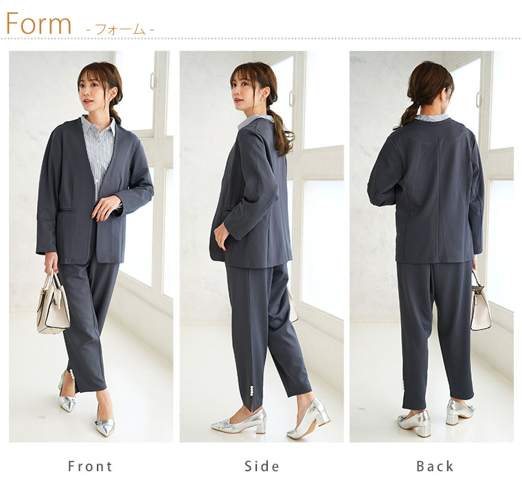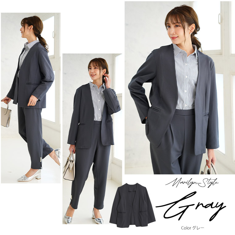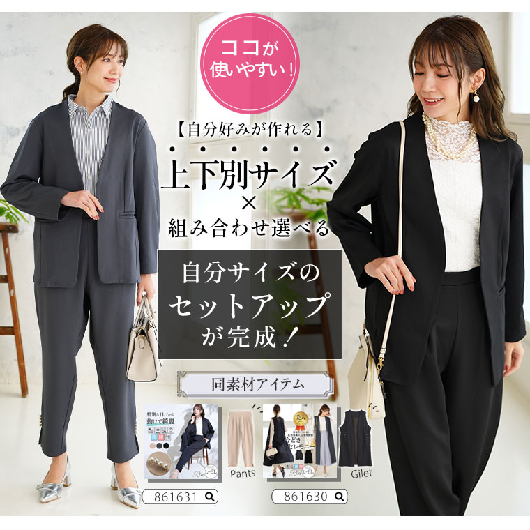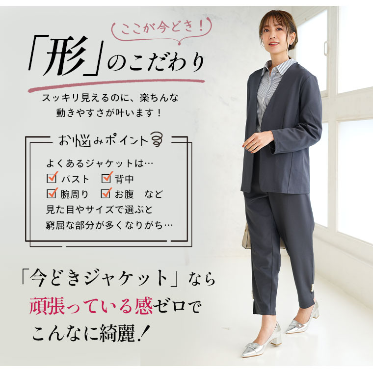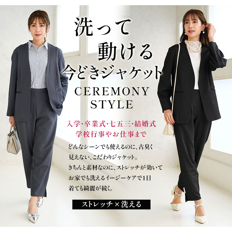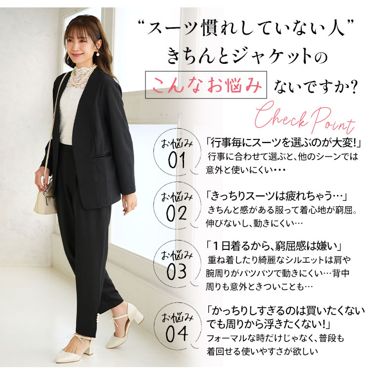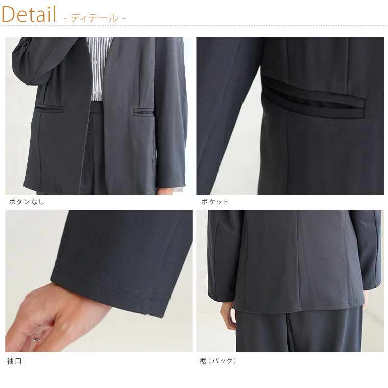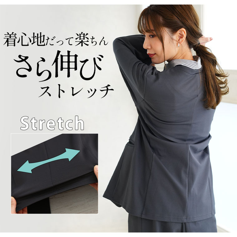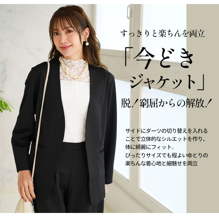 【Rin】スッキリ見えのストレッチジョーゼットノーカラージャケット