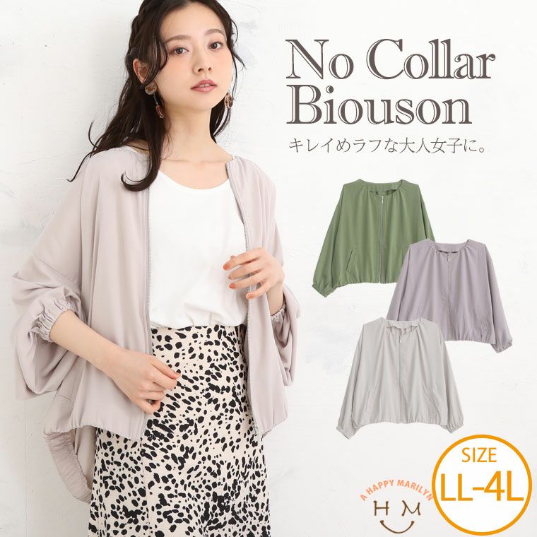ライトアウター ジャケット LL 3L 4L 春 春物 春服 ぽっちゃり ゆったり かわいい おしゃれ カジュアル ナチュラル プラスサイズ 春アウター 羽織り きれいめ 上品 ガーリー ダブルクロス ノーカラー ブルゾン ライトアウター ジャケット | 大きいサイズの通販ならハッピーマリリン