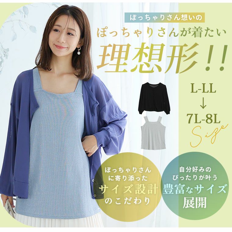 他の画像を見る LL 3L 4L 5L 6L 7L 8L 秋 秋物 秋服 冬 冬物 冬服 ぽっちゃり ゆったり 新色追加!! 選べる素材 フィット感にこだわり!! 着心地自慢の シアー トップス タンクトップ アンサンブル | 大きいサイズの通販ならハッピーマリリン 価格 ¥ 2,290 税込 4.26 お気に入りに登録する