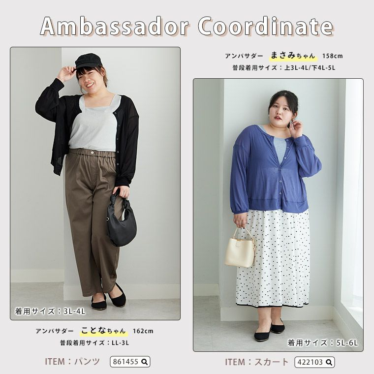 他の画像を見る トップス コーデセット 2点セット LL 3L 4L 5L 6L 長袖 夏 夏物 夏服 夏用 ぽっちゃり ゆったり プラスサイズ かわいい おしゃれ カジュアル ナチュラル お腹 二の腕カバー お尻 2typeから選べる 涼やか シアー アンサンブル | 大きいサイズの通販ならハッピーマリリン 価格 ¥ 2,990 税込 3.67 お気に入りに登録する