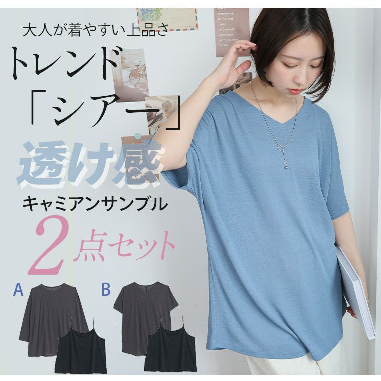 他の画像を見る LL 3L 4L 5L 6L 7L 8L 半袖 夏 夏物 夏服 夏用 ゆったり お腹 二の腕カバー 丁度良い透け感 選べる3シルエット 欲しかった透けすぎない シアー トップス & タンクトップ アンサンブル | 大きいサイズの通販ならハッピーマリリン HIT100 価格 ¥ 2,190 税込 4.33 お気に入りに登録する