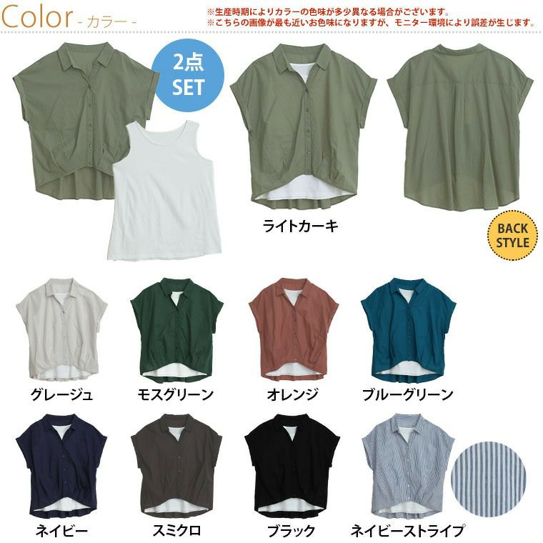 他の画像を見る LL 3L 4L 5L 6L 半袖 ノースリーブ 夏 夏物 夏服 夏用 ぽっちゃり ゆったり プラスサイズ カジュアル お腹 【さら軽コットン】 フロントタック使い シャツ × タンクトップ アンサンブル | 大きいサイズの通販ならハッピーマリリン SALE 定価 ¥ 2,190 のところ 価格 ¥ 1,750 税込 3.07 お気に入りに登録する