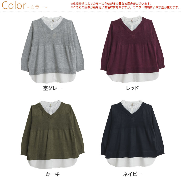 3. 大きいサイズ バンド襟 シャツ フェイクプルオーバー