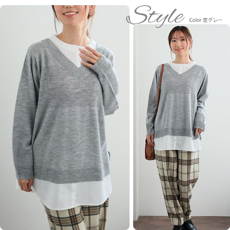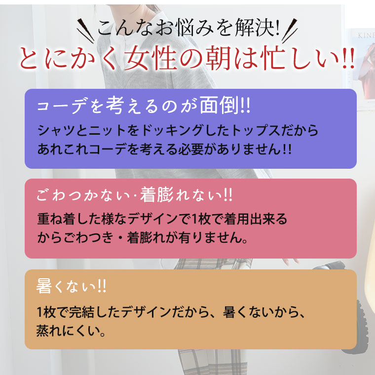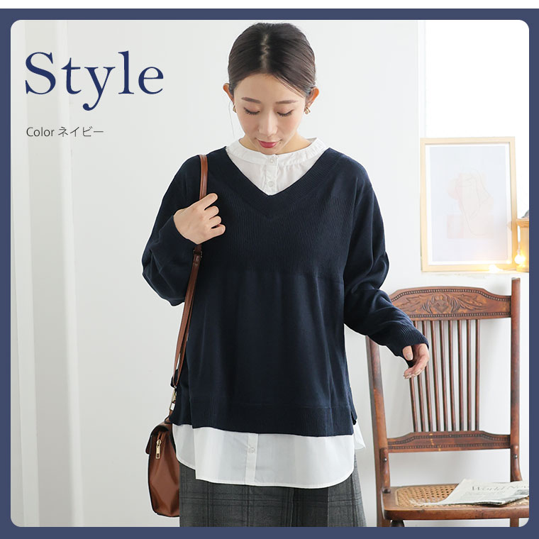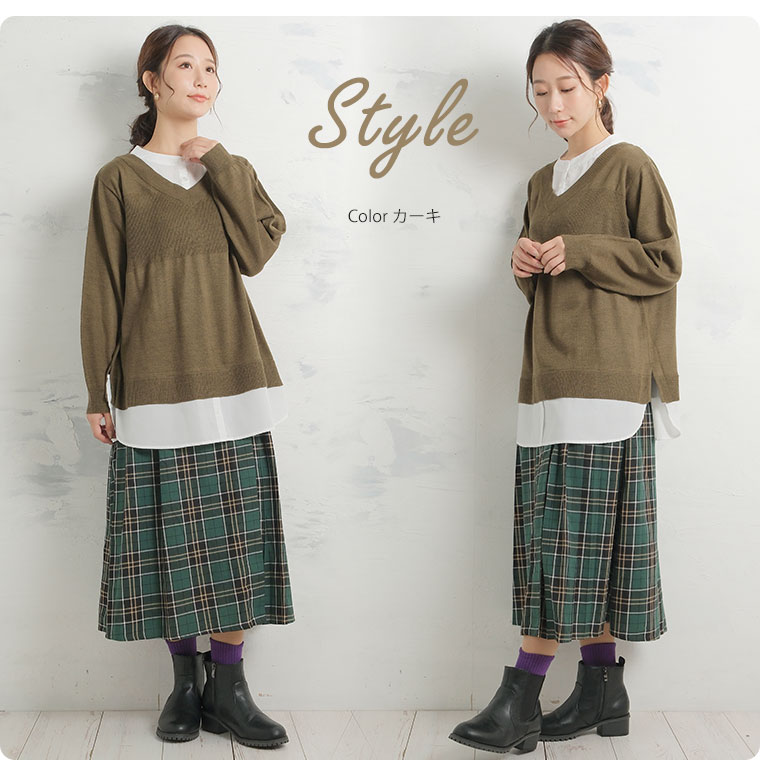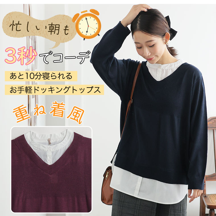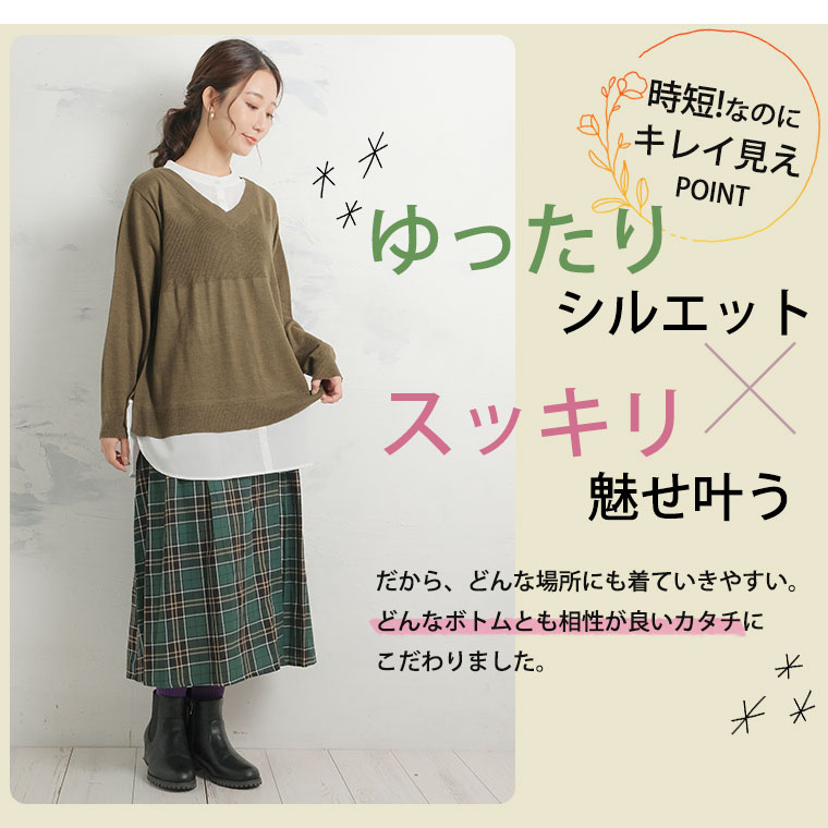3秒でコーデ完成!シャツ重ね着風プルオーバー
