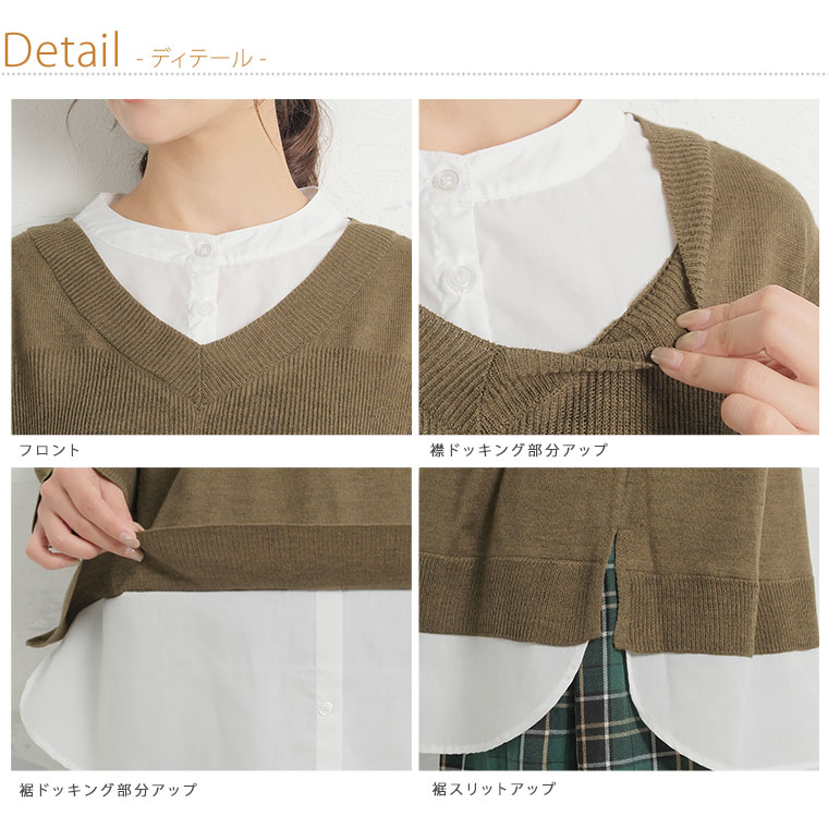 4. 大きいサイズ バンド襟 シャツ フェイクプルオーバー