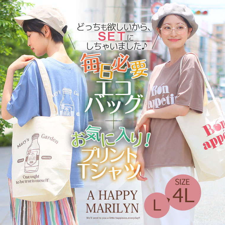 Tシャツとお揃いのエコバッグ付き!おもしろ可愛いプリントTシャツ