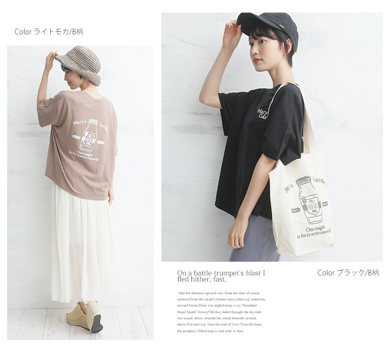 トップス カットソー tシャツ LL 3L 4L ぽっちゃり ゆったり 胸周り 二の腕カバー 半袖 トートバック お揃い エコバッグ付き プリント Tシャツ