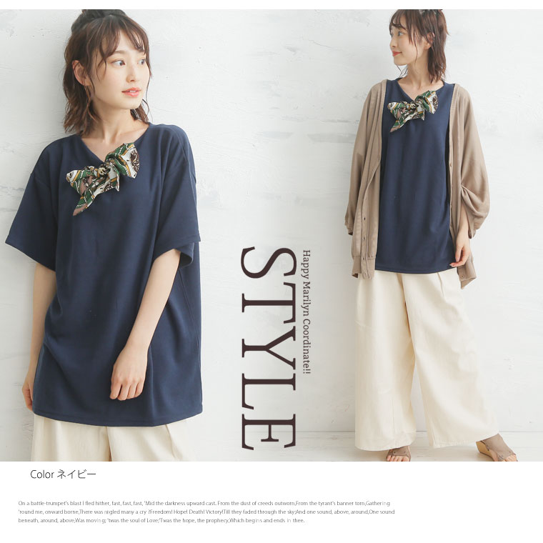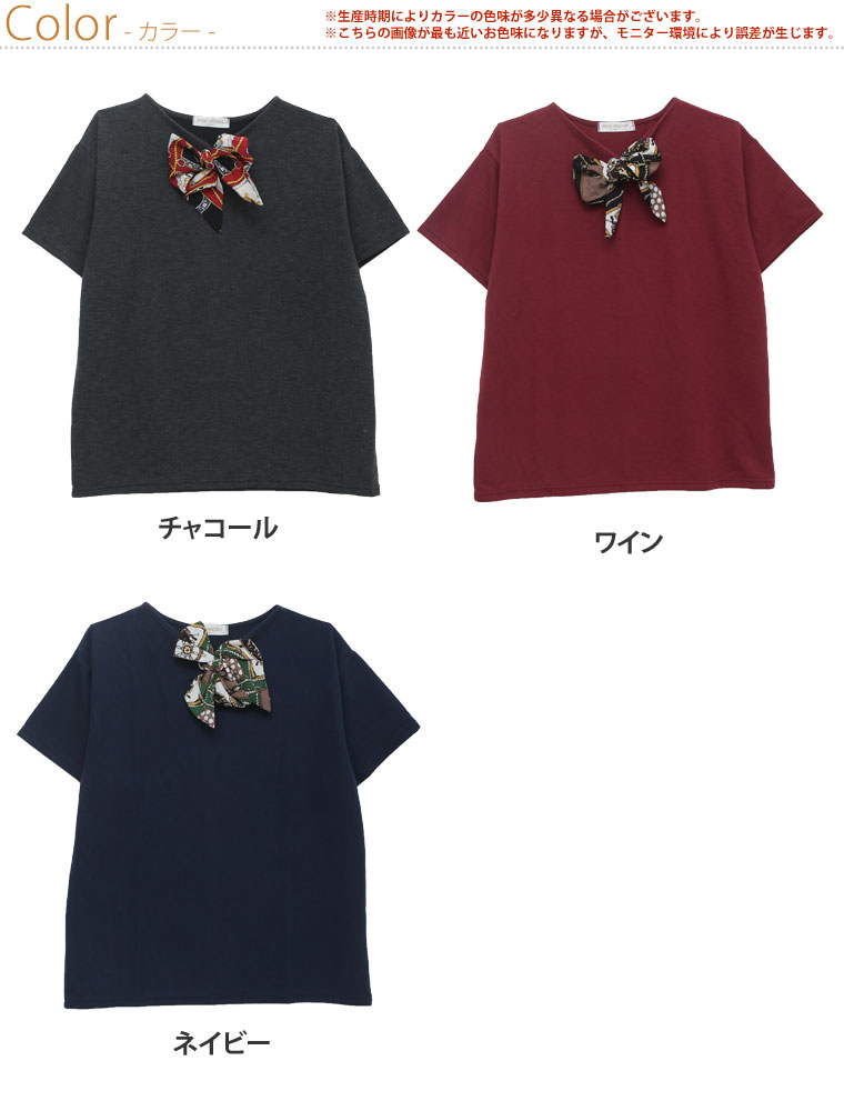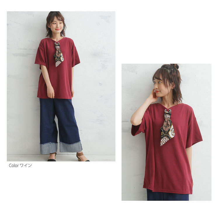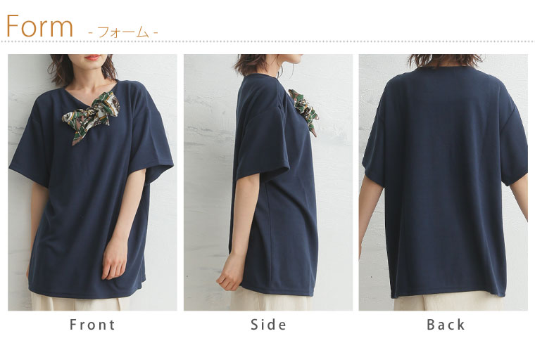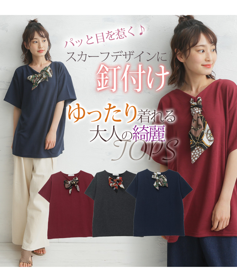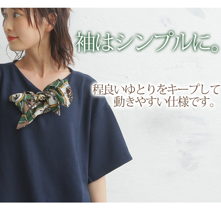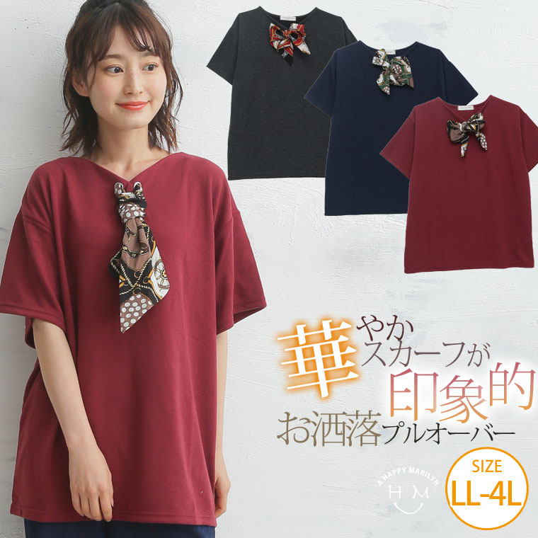 カットソー LL 3L 4L 夏 夏物 夏服 夏用 ゆったり 胸周り 二の腕カバー 半袖 ゆったり かわいい おしゃれ カジュアル ナチュラル スカーフ付き デザイン プルオーバー