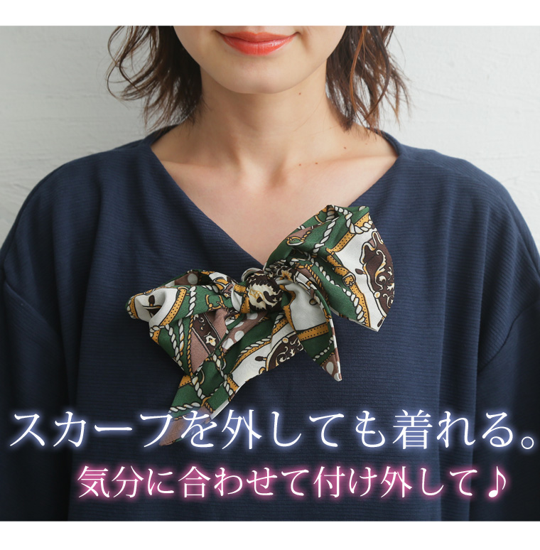 ゆったりなのにスッキリ見せるスカーフ付きデザインプルオーバー