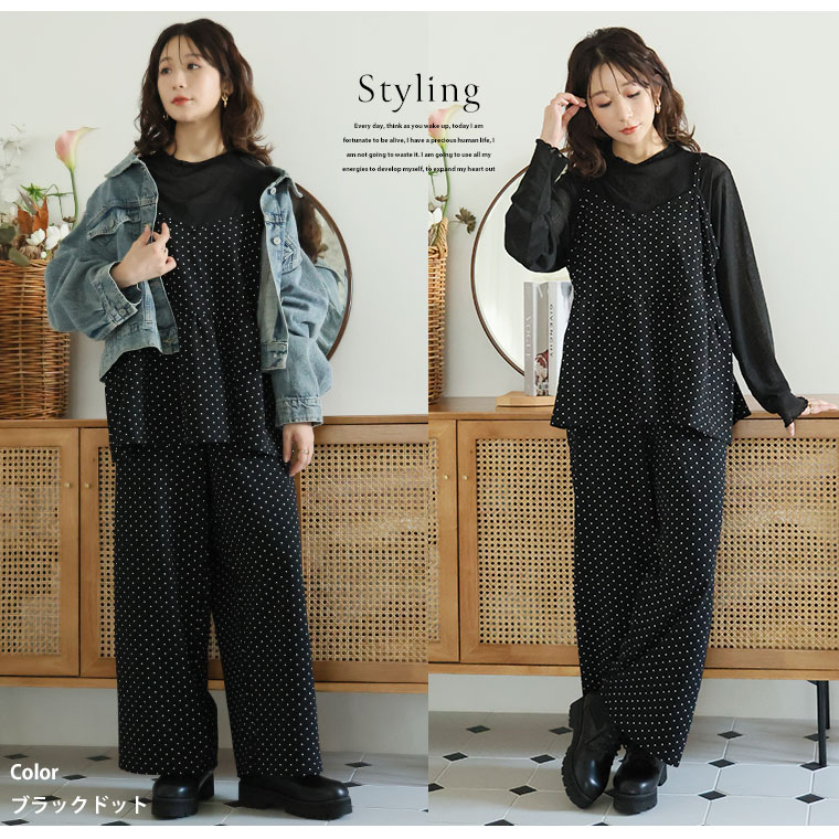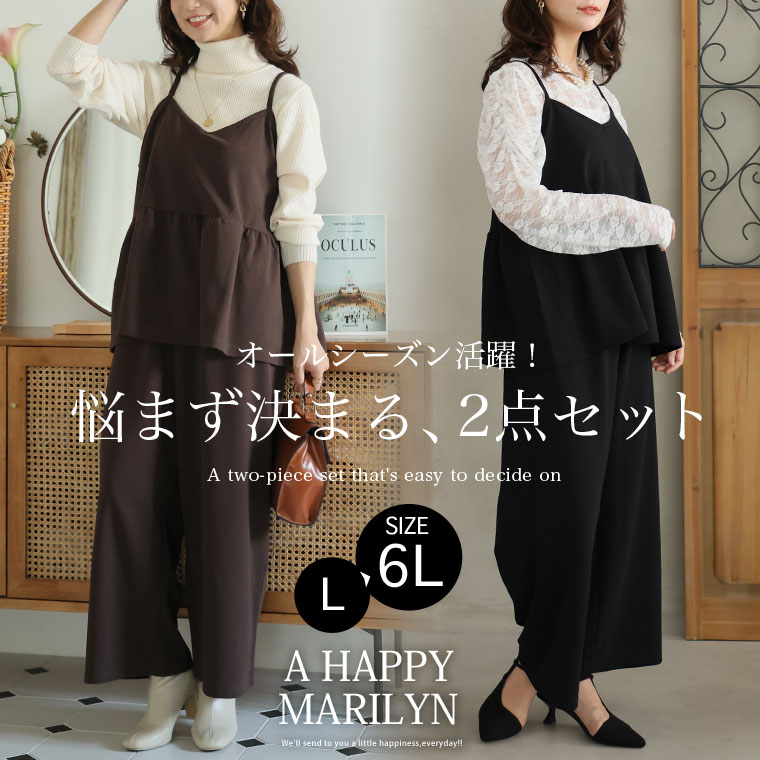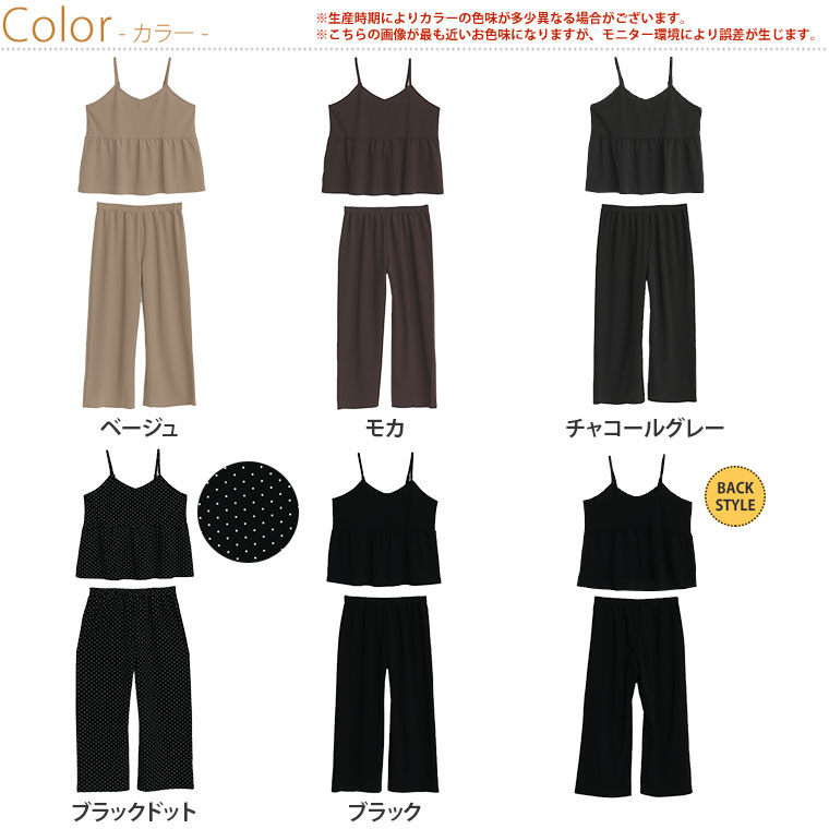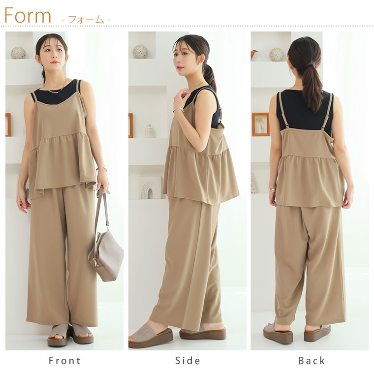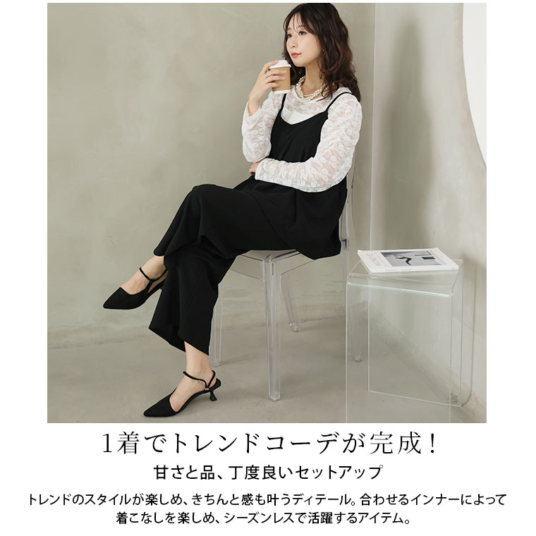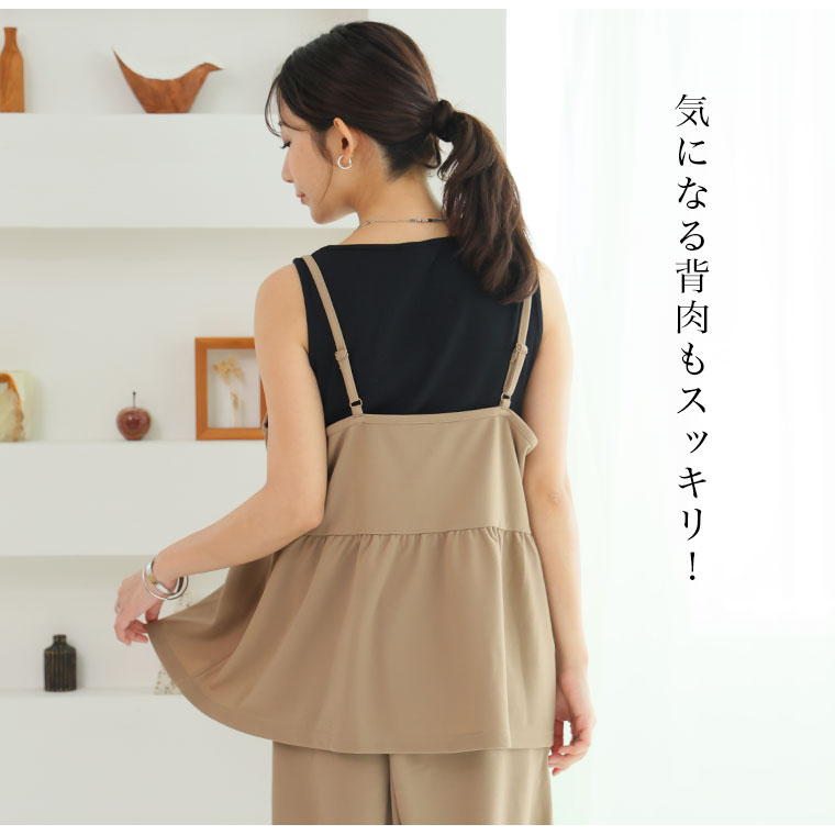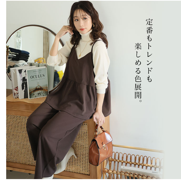 キャミソールとストレートパンツの品のいいセットアップ