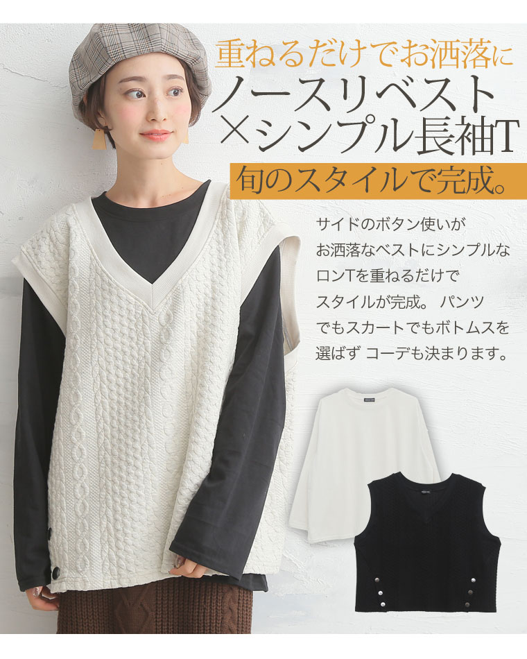 重ねるだけでスタイルの完成♪サイドのボタンがちょっぴり辛めのアクセントに。