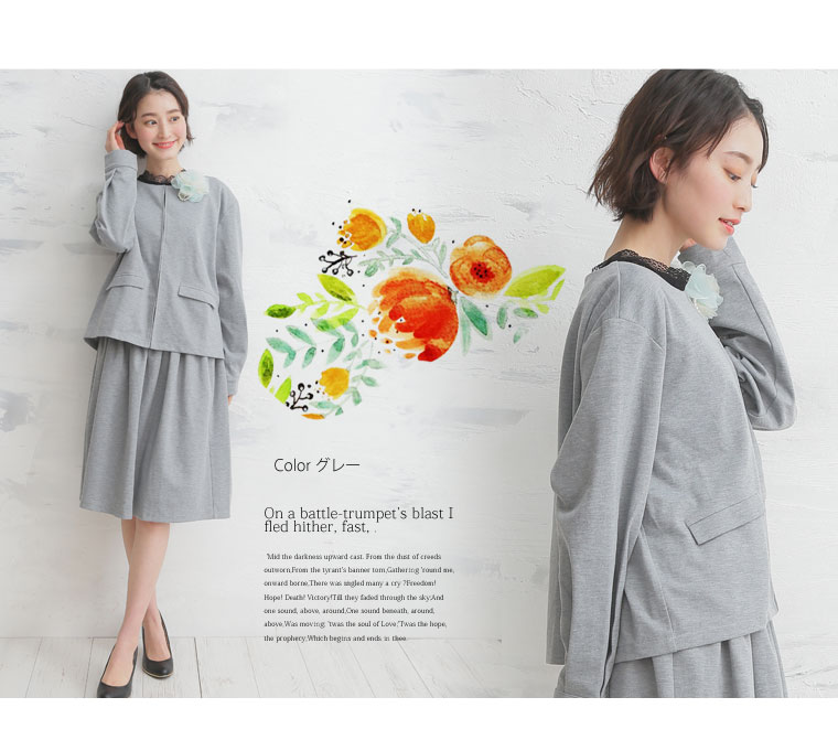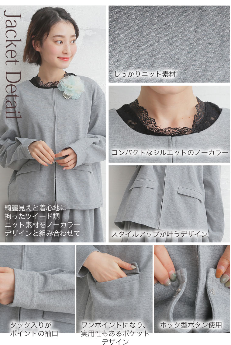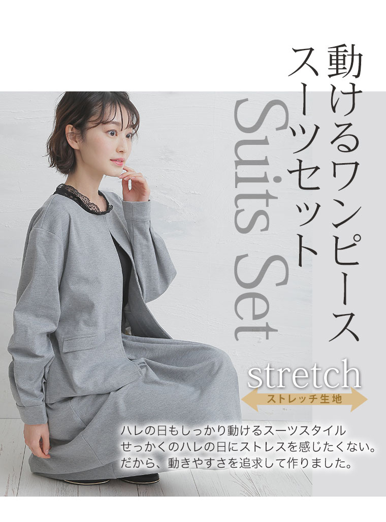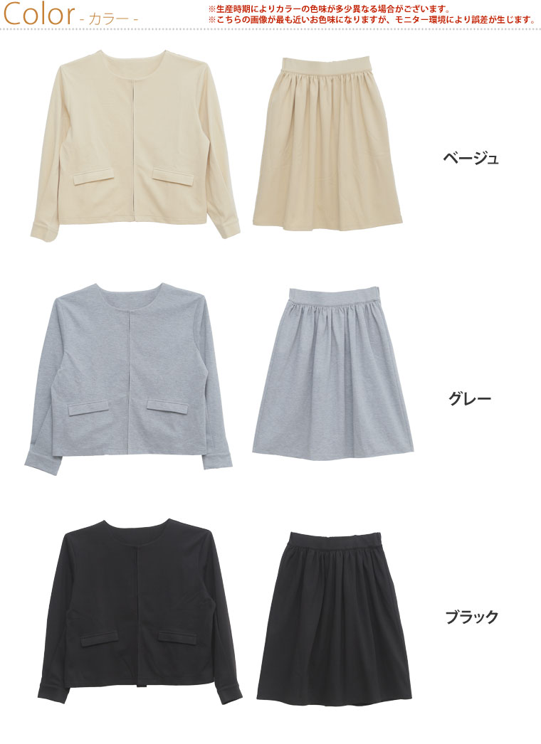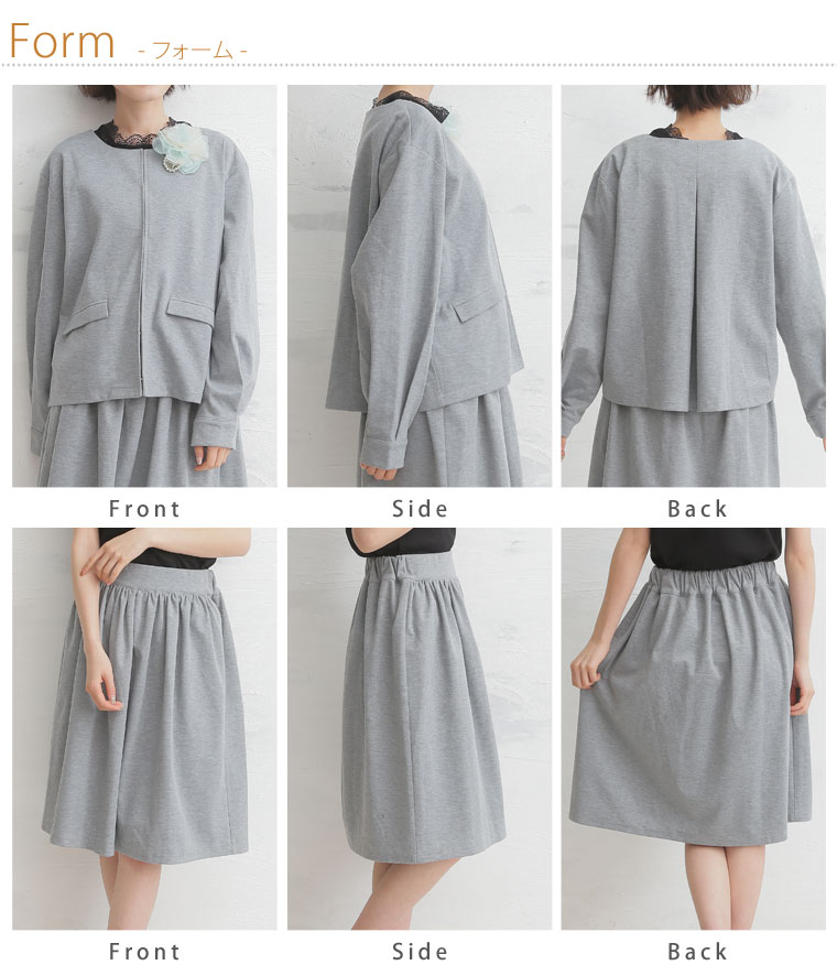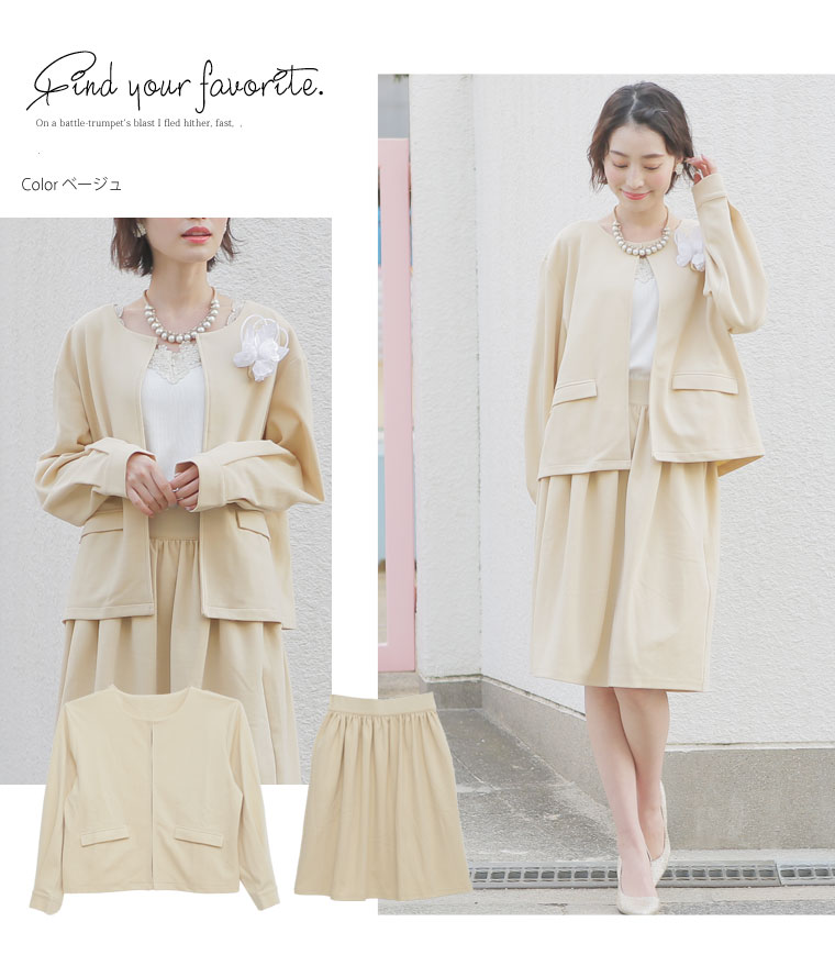 ジャケットとスカートの2点セットが登場!!柔らかな生地感でストレスフリーでご使用いただけます。
