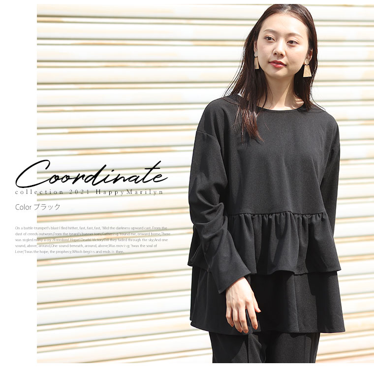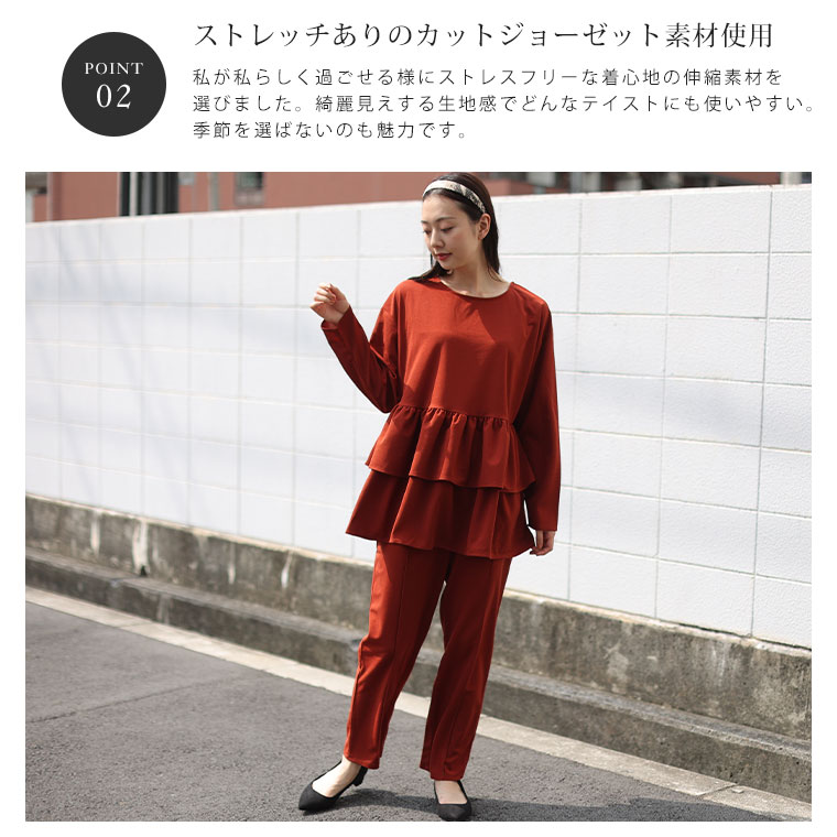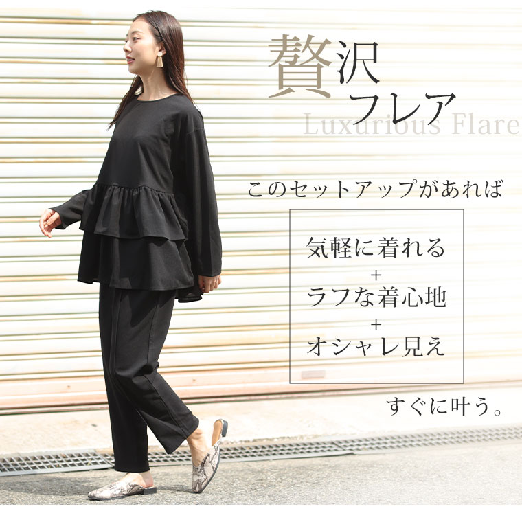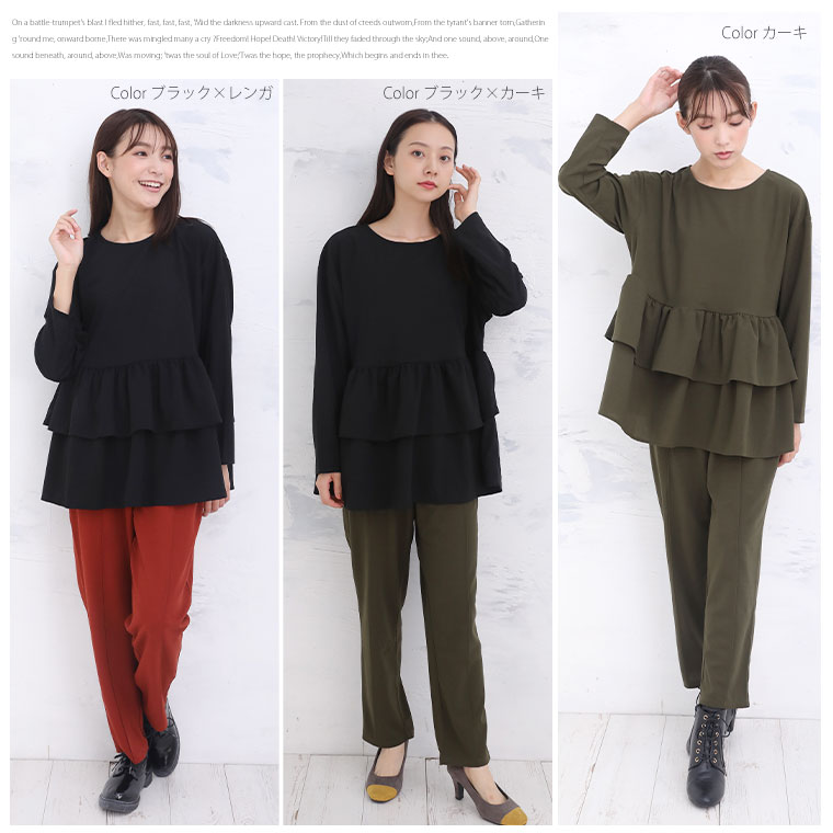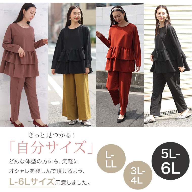 オリジナル 上下セット set トップス パンツ LL 3L 4L 5L 6L 秋 秋物 秋冬 ぽっちゃり ゆったり 長袖 お腹 太もも 胸周り 二の腕カバー お尻 腰周り フリルトップス セットアップ