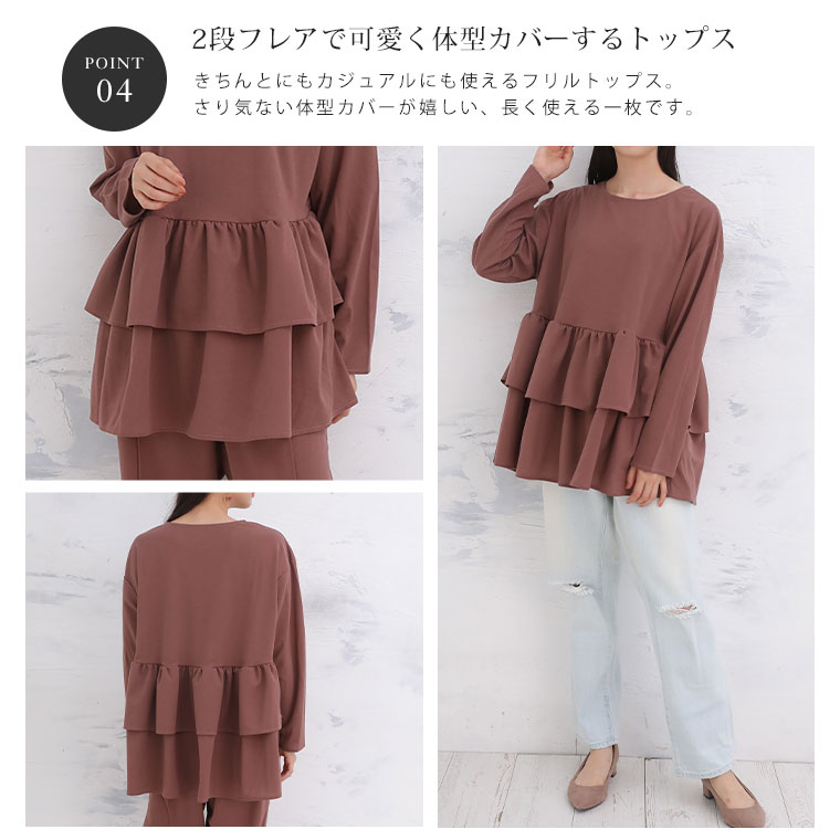 4. 大きいサイズ フリルトップス セットアップ
